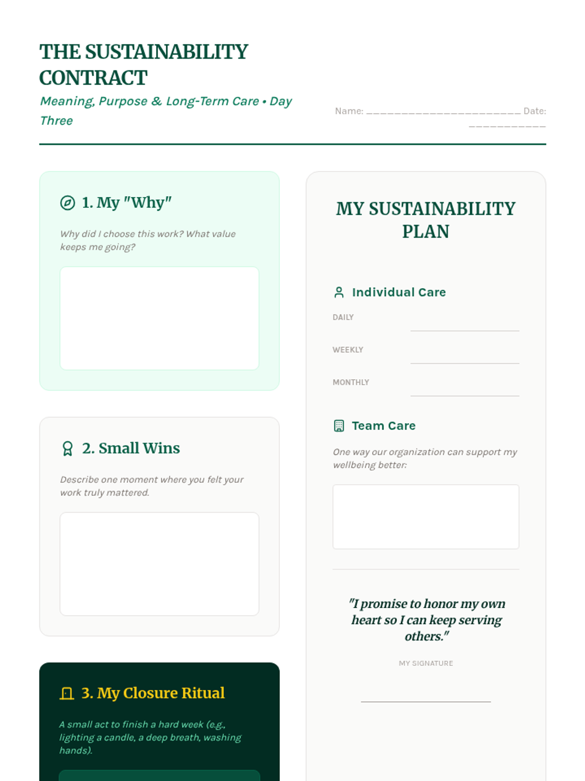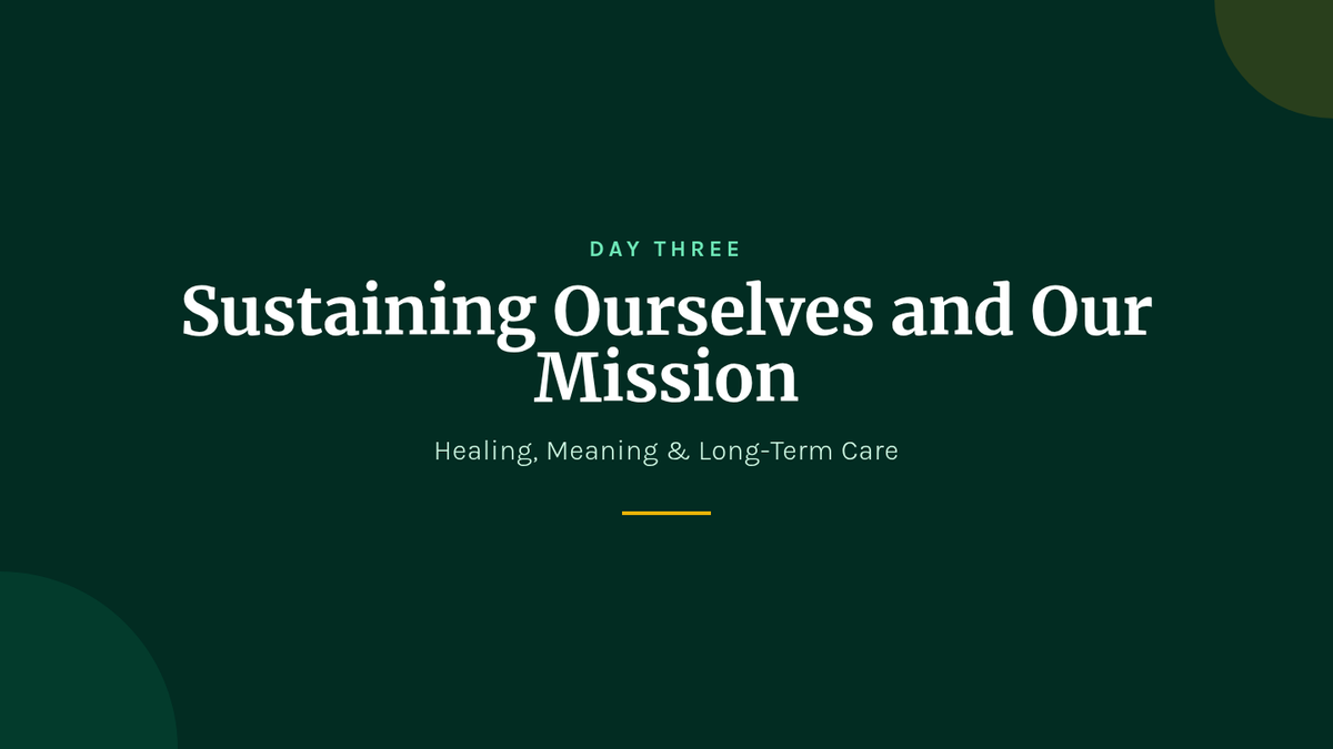 A 90-minute concluding session focused on finding meaning, celebrating collective impact, and finalizing long-term sustainability plans for both individuals and the organization.