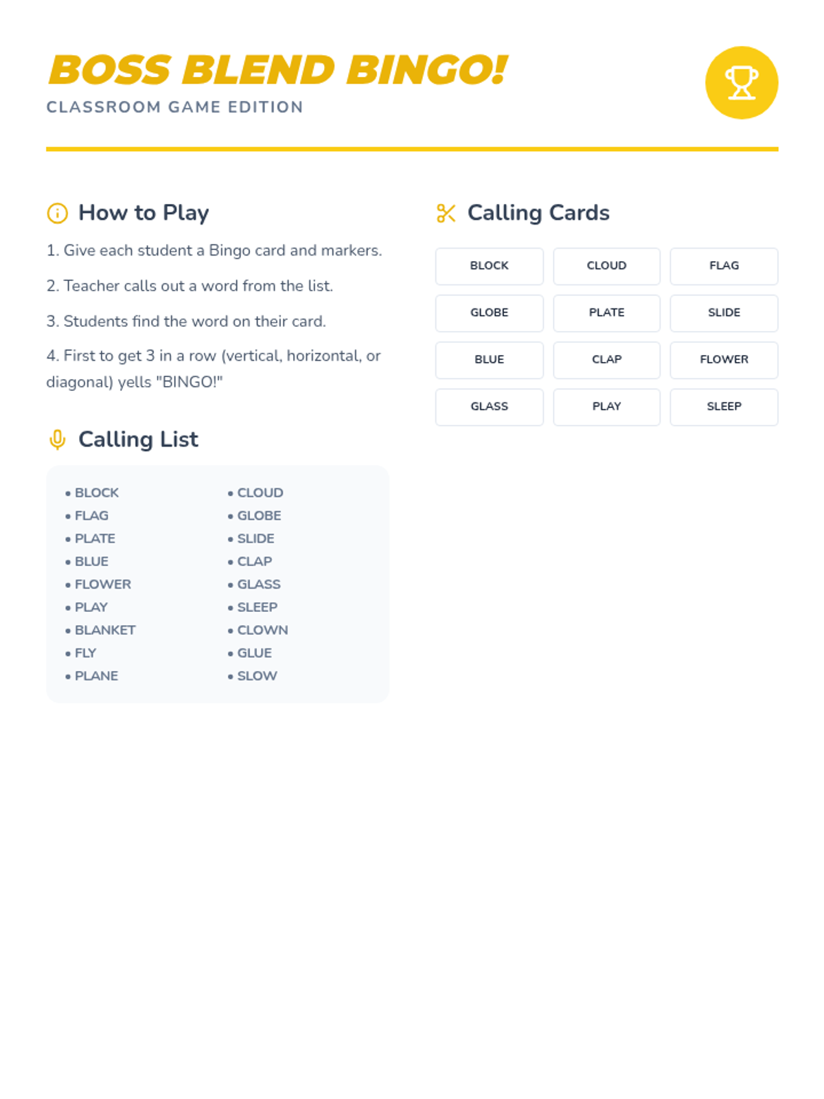 Ovaj materijal pomaže učenicima u praćenju i poticanju uzornog ponašanja tijekom školskog tjedna pomoću vizualnog sustava nagrađivanja. Lesson uključuje tjednu karticu za sakupljanje pluseva i kratki vodič za učitelje.