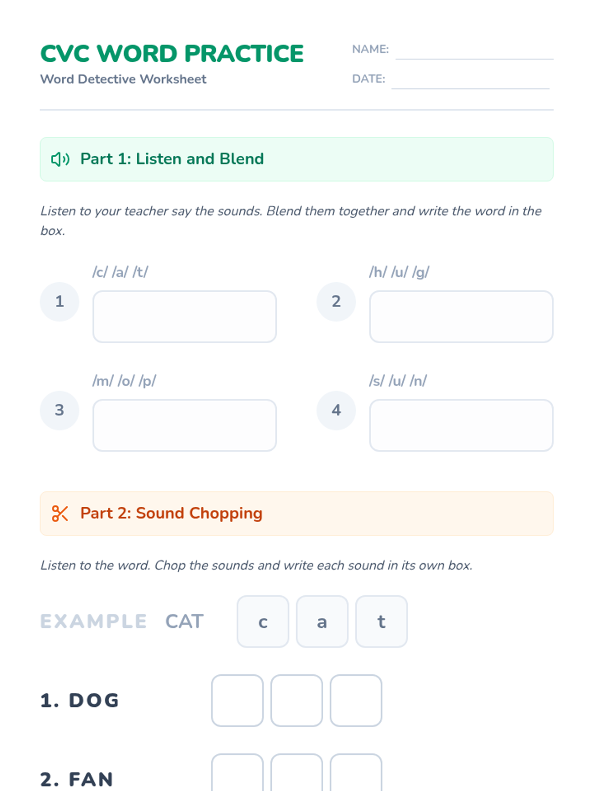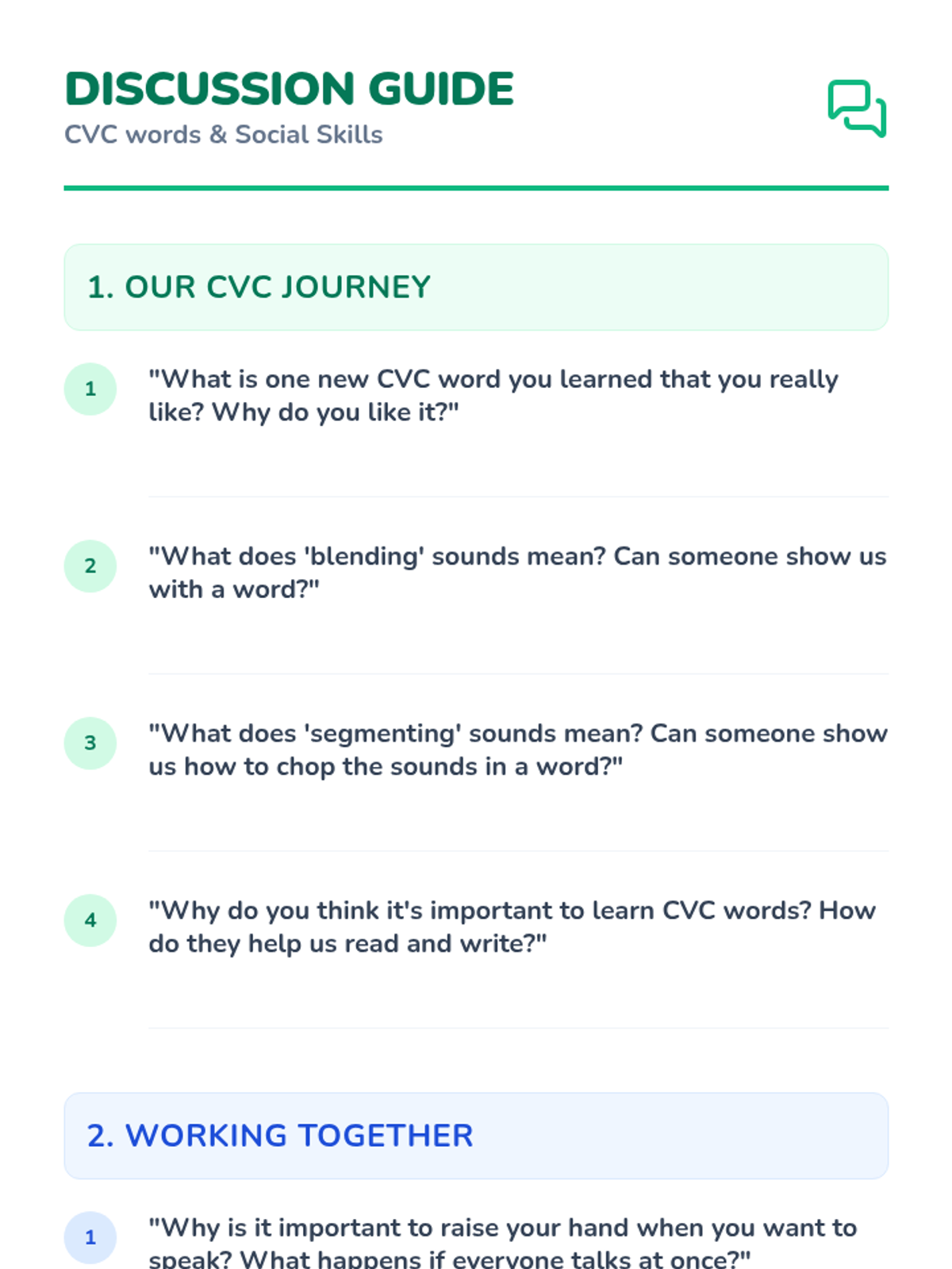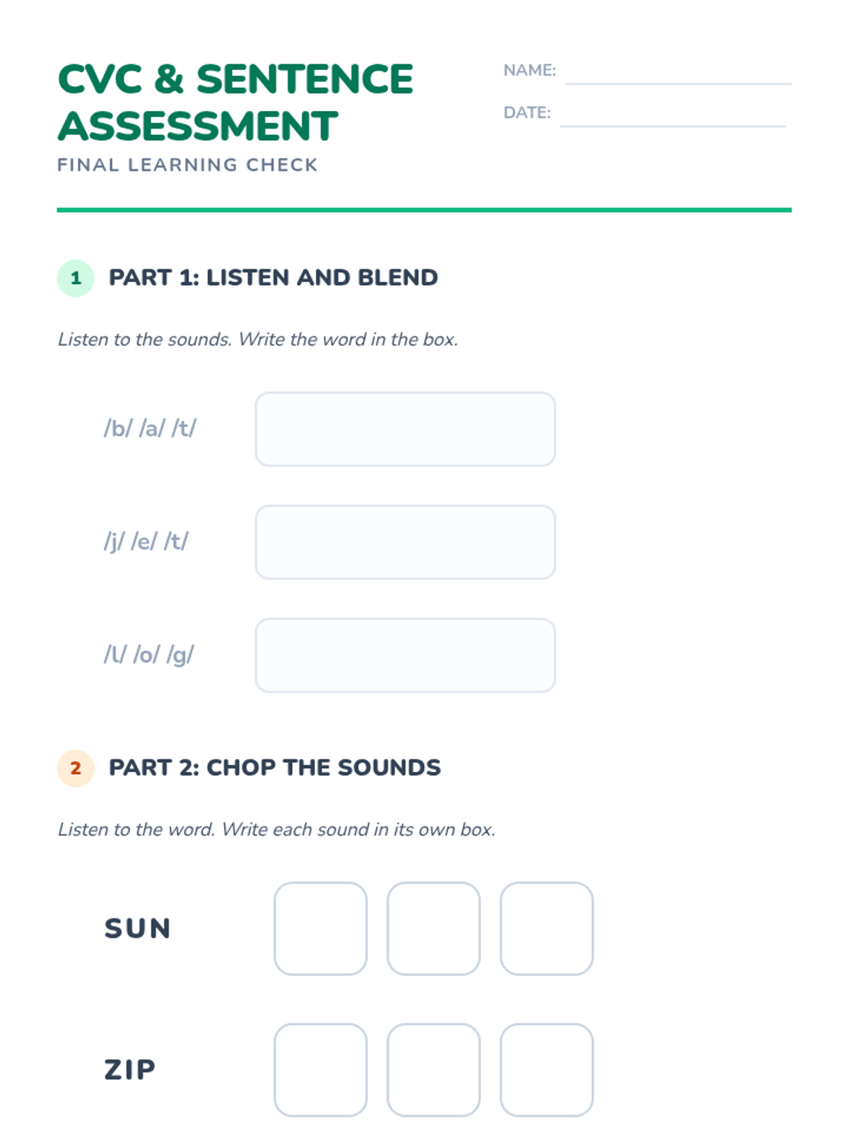 A comprehensive 10-session unit focused on mastering CVC words and introductory sentence writing through multi-sensory activities and social skill practice.