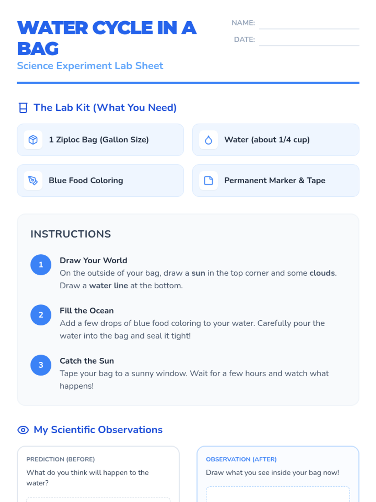 Students explore the mechanics of the water cycle and daily weather patterns through guided experiments and systematic observation.