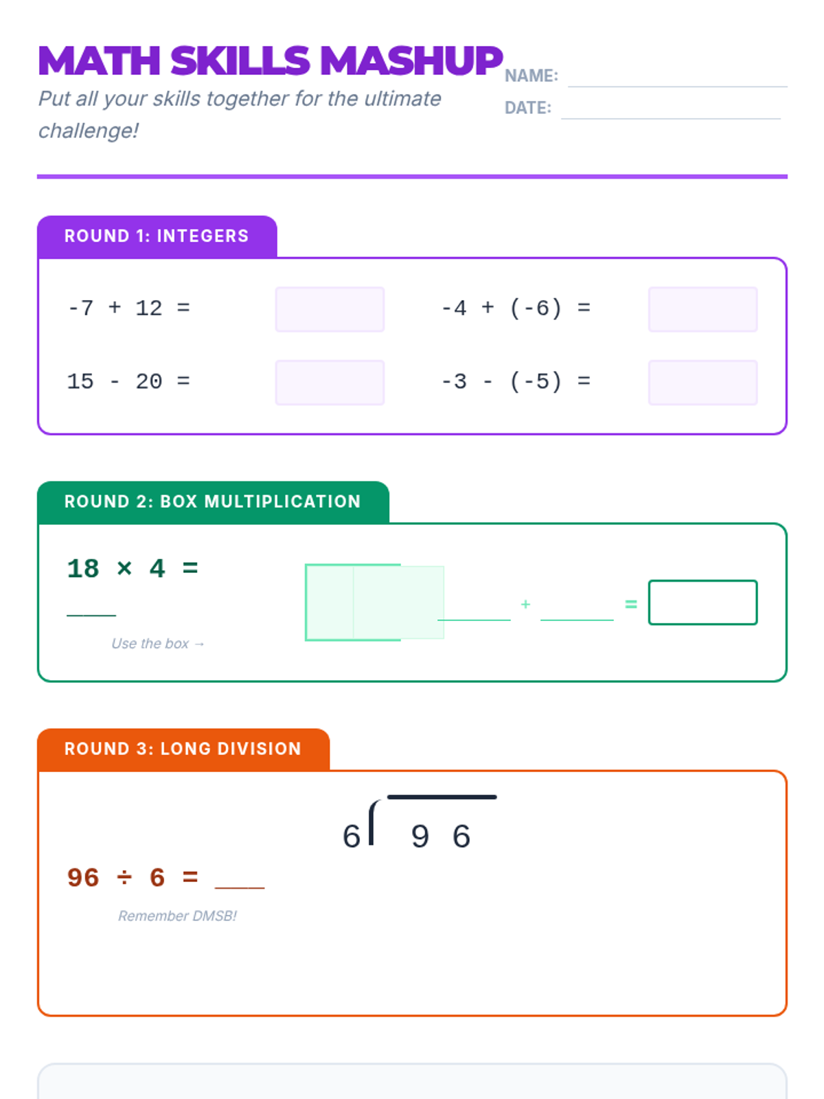 A comprehensive lesson on the Order of Operations (PEMDAS/GEMS) featuring differentiated practice and scaffolded supports for diverse learners. Students will master the sequence of calculations through visual guides and tiered problem sets.