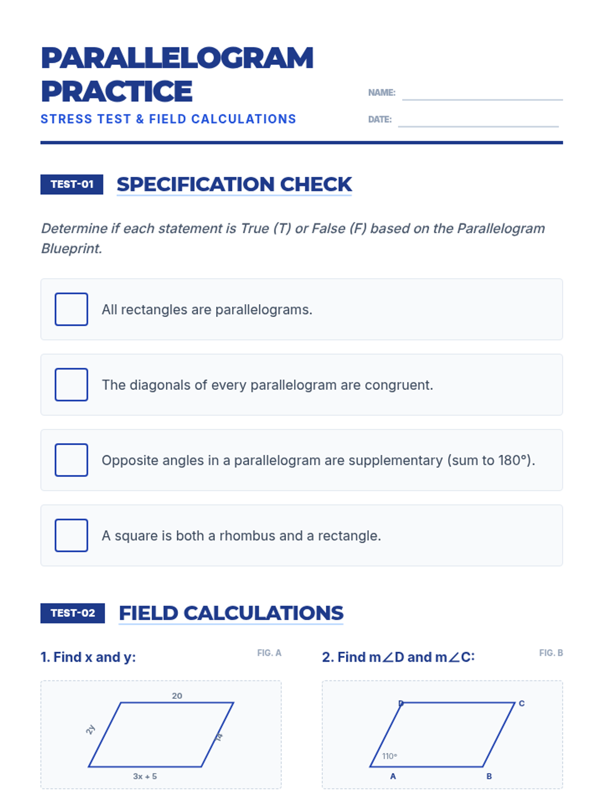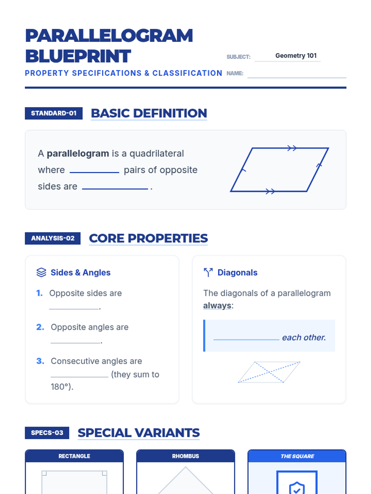Junior architects calculate the area and perimeter of squares, rectangles, triangles, and parallelograms in a blueprint-themed drafting challenge.