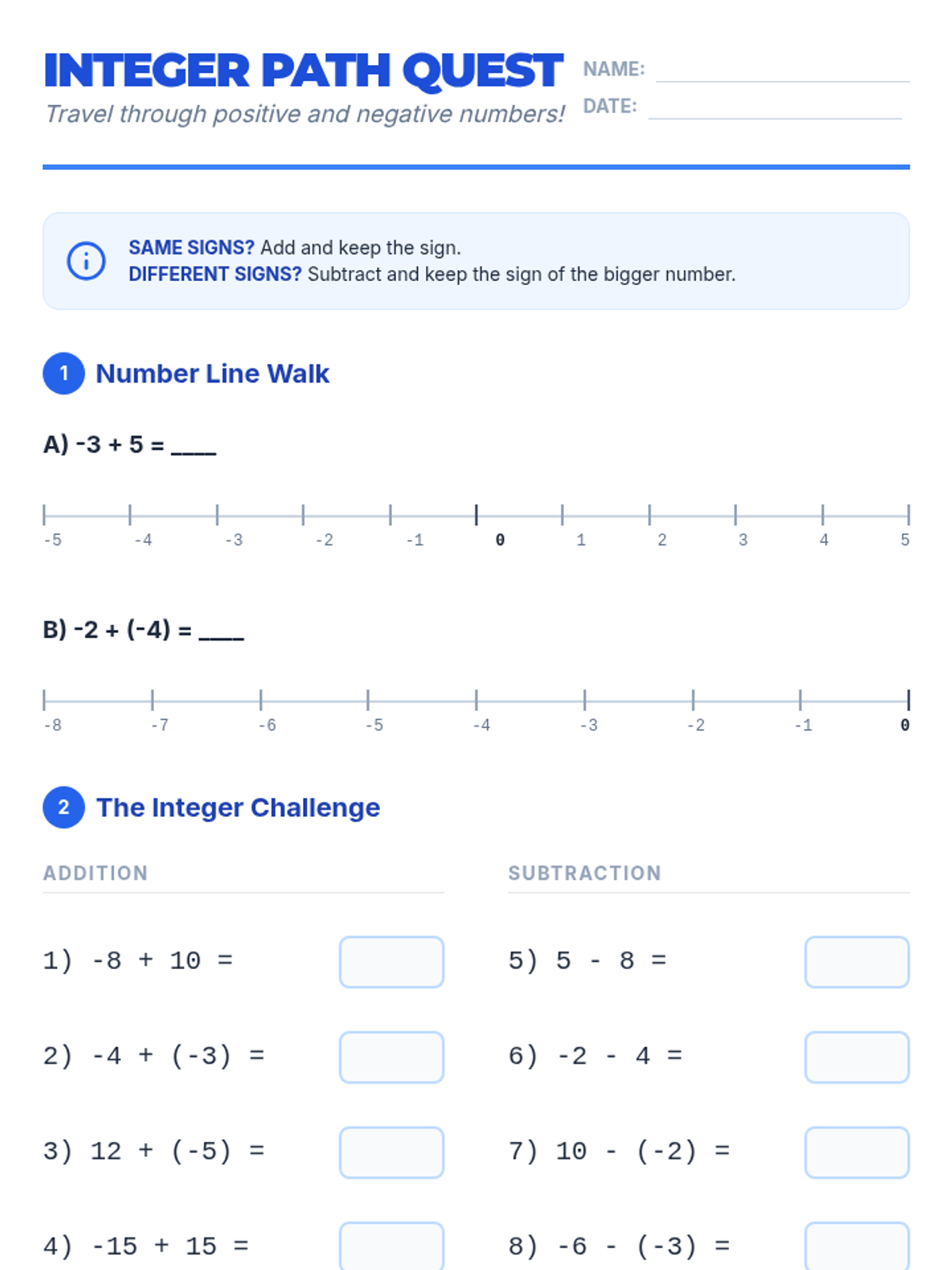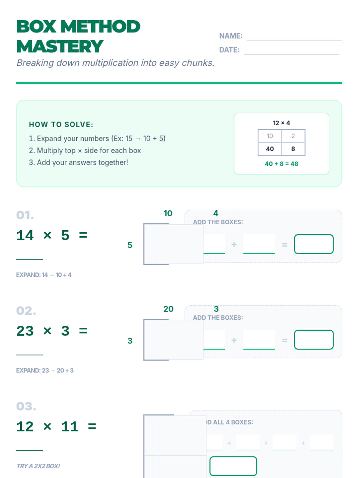 A collection of scaffolded math worksheets focusing on multiplication, division, and integer operations for 8th-grade students needing foundational support.