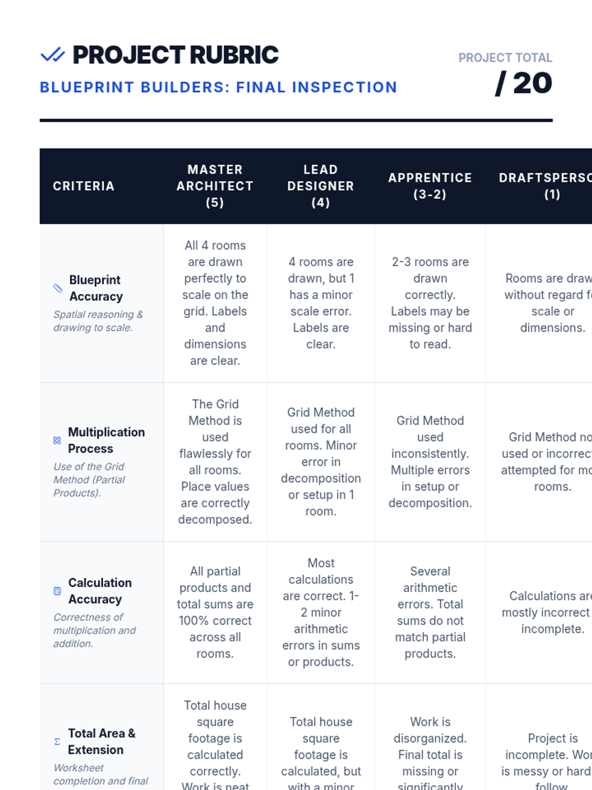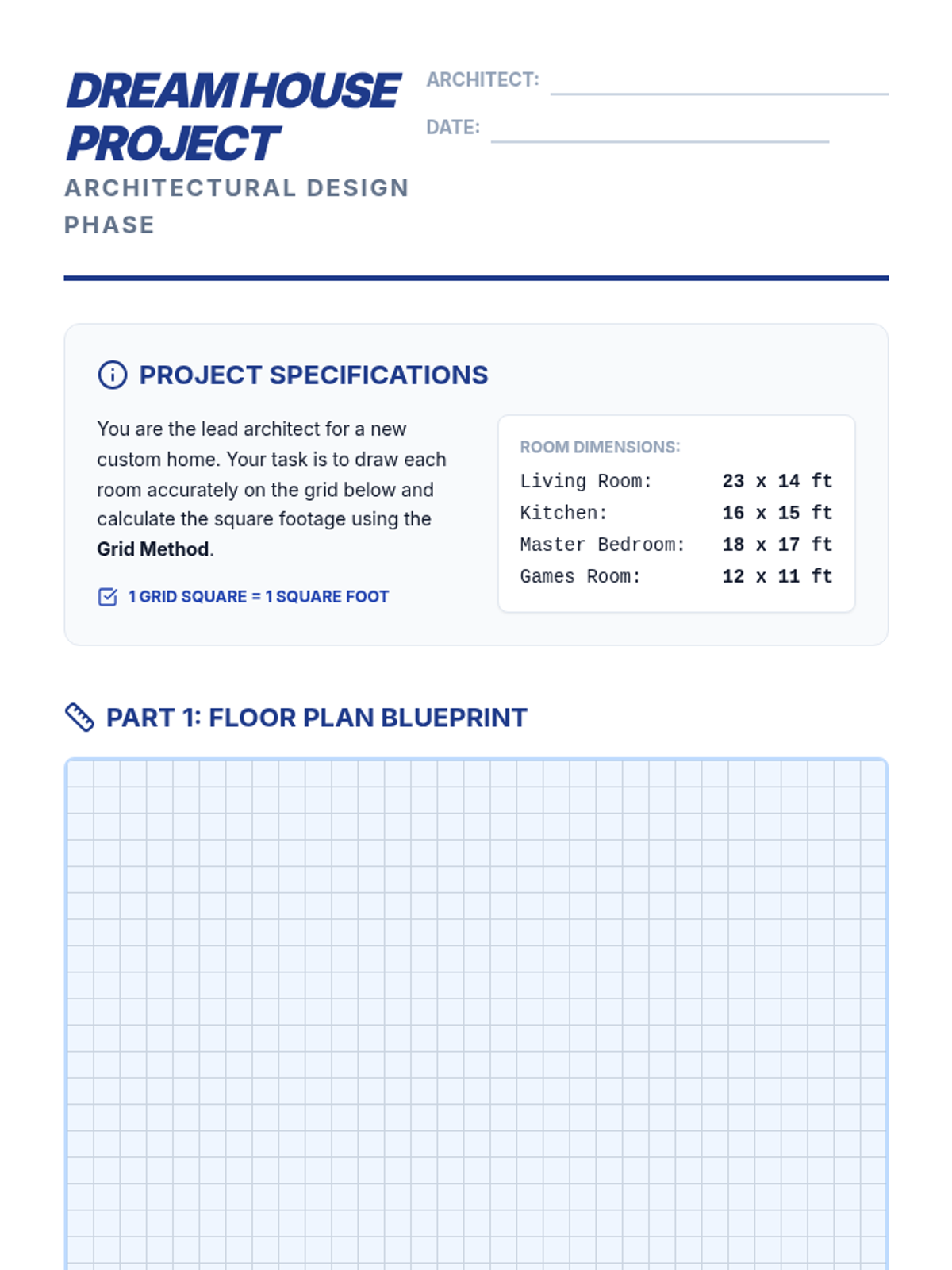 Students become junior architects in this hands-on math lesson, using the grid method of multiplication to calculate the square footage of rooms in their very own 'Dream House' blueprint. The lesson bridges the gap between abstract 2-digit multiplication and concrete spatial reasoning.