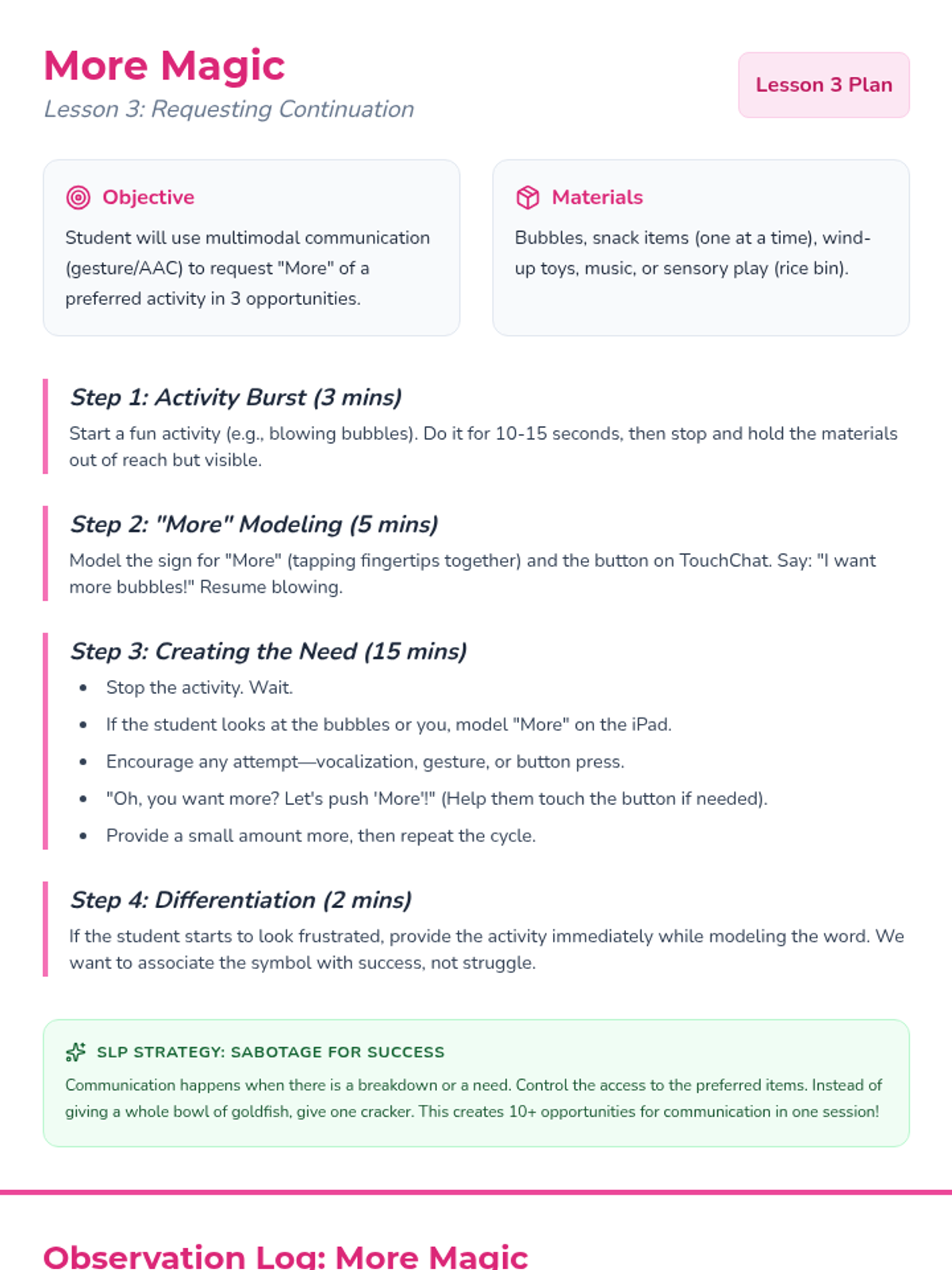 Modeling and prompting the 'More' symbol during sensory and high-engagement tasks.