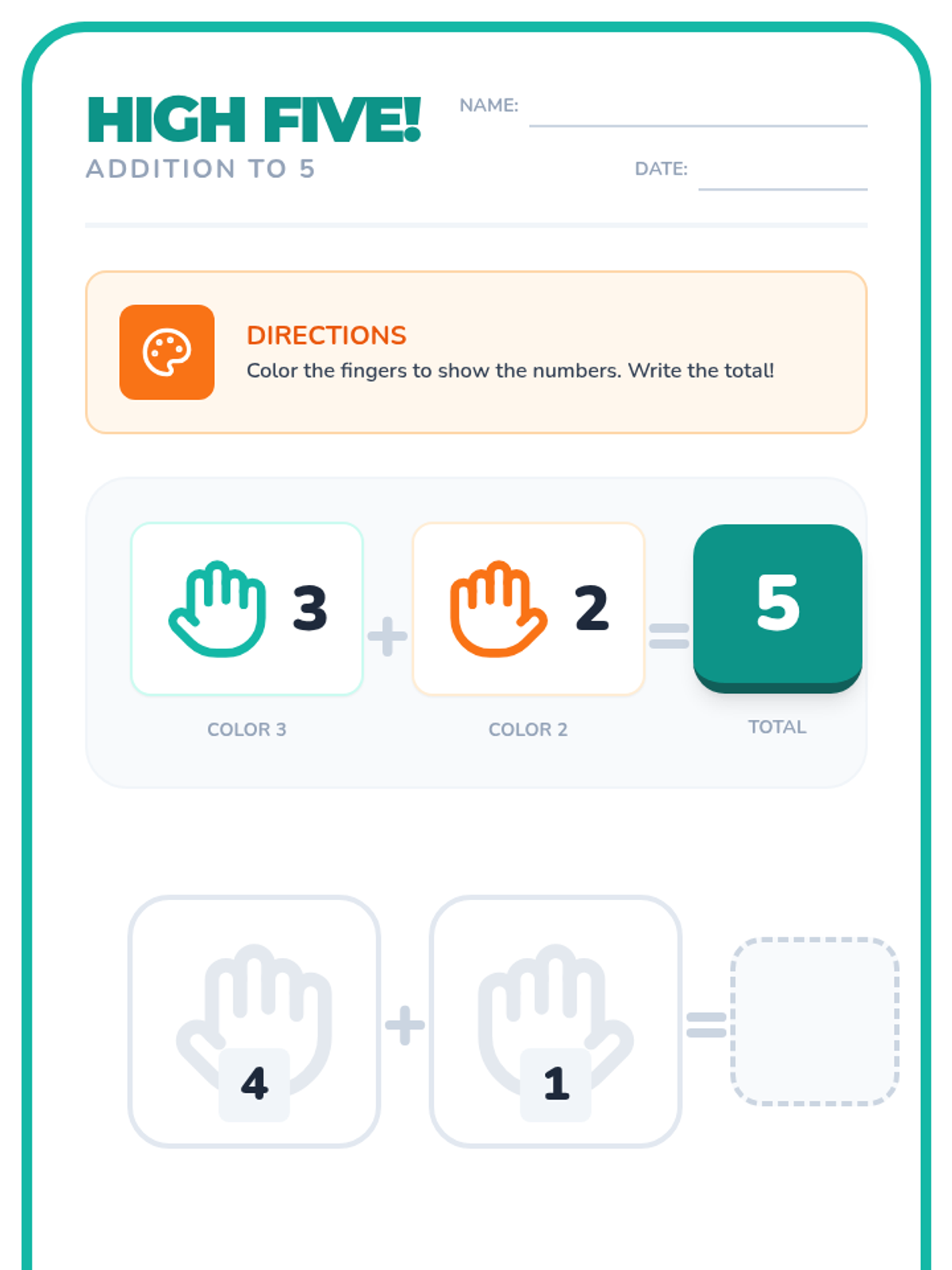 A comprehensive kindergarten lesson on adding numbers to reach a sum of five, utilizing hands-on manipulatives, visual aids, and movement-based learning.