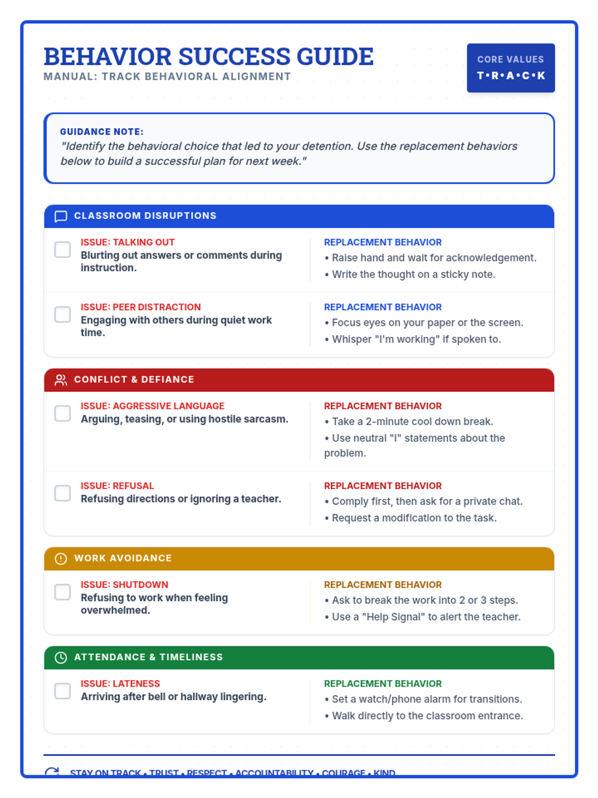 A set of resources designed to help students process behavioral incidents through reflection, identifying impact, and planning better choices.