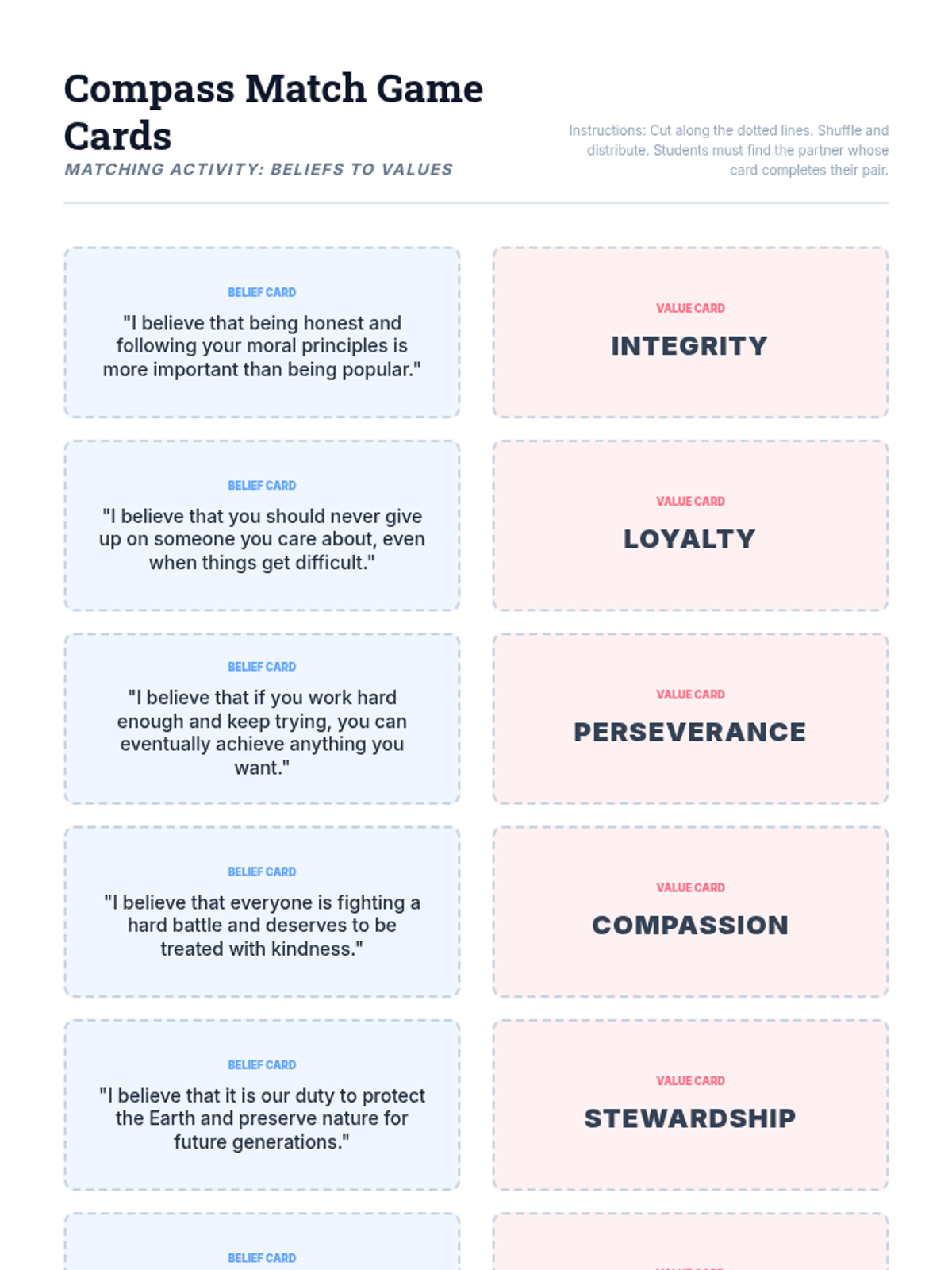 Demonstrates how values translate into action through decision-making. Students analyze real-world dilemmas and use a decision matrix to navigate choices based on their personal value compass.