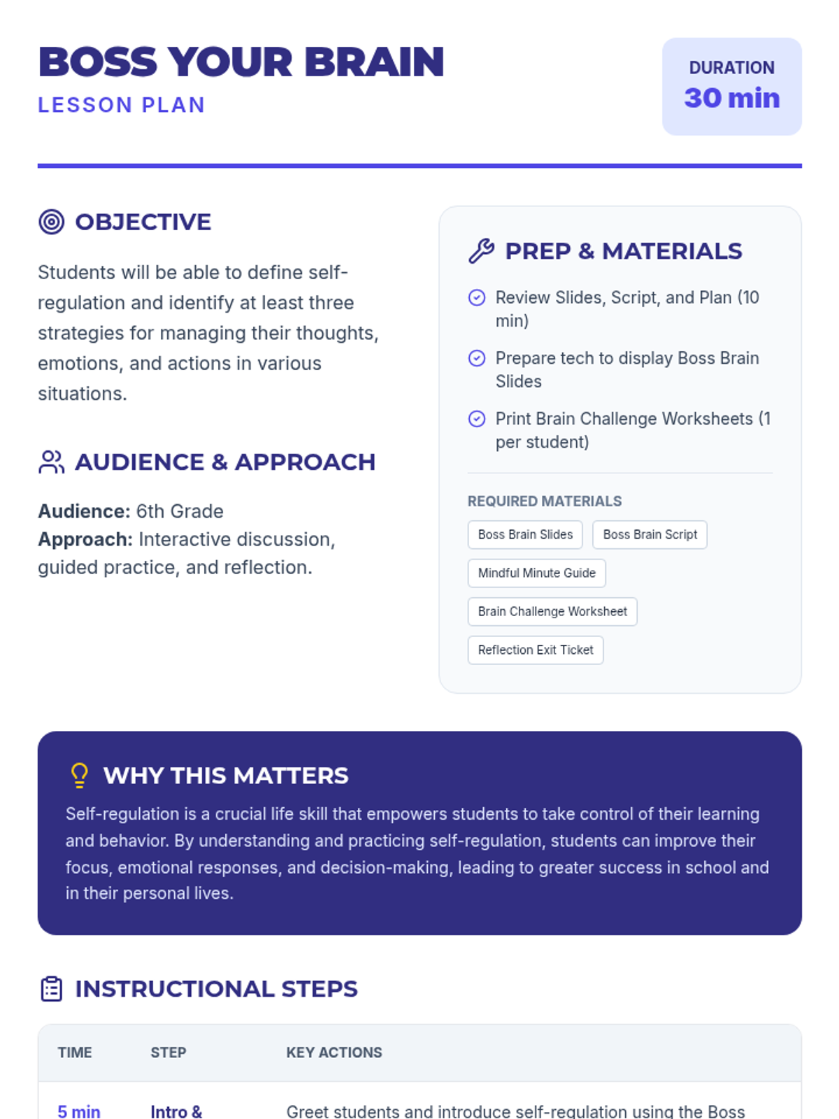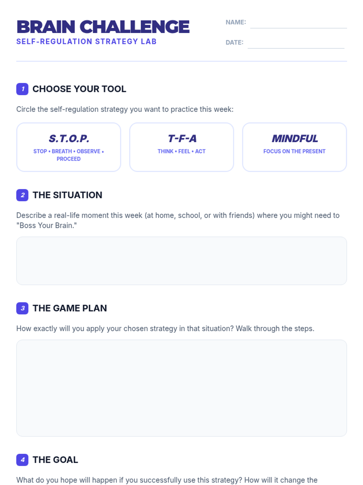 This lesson empowers 6th-grade students to master self-regulation through interactive strategies like the S.T.O.P. method and mindfulness. Students will learn to manage their thoughts, emotions, and actions to improve focus and academic success.