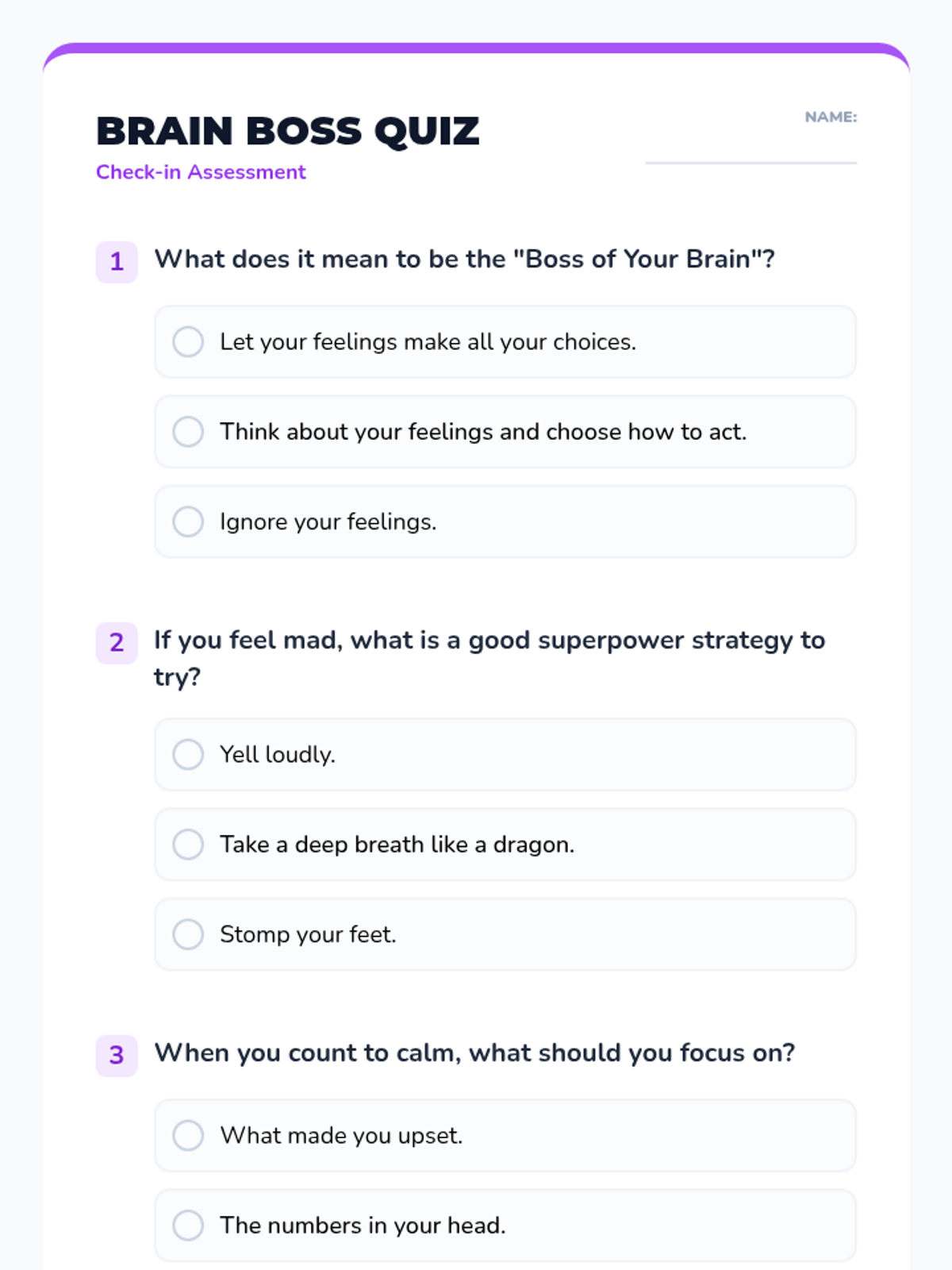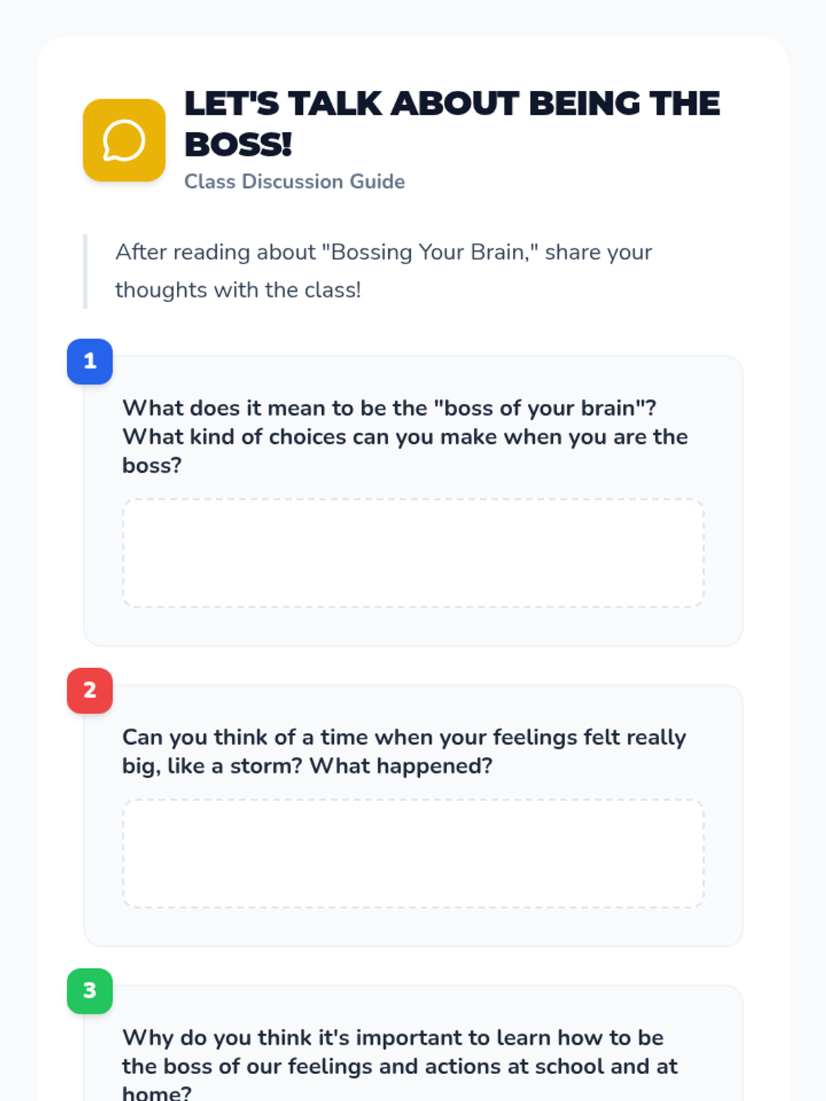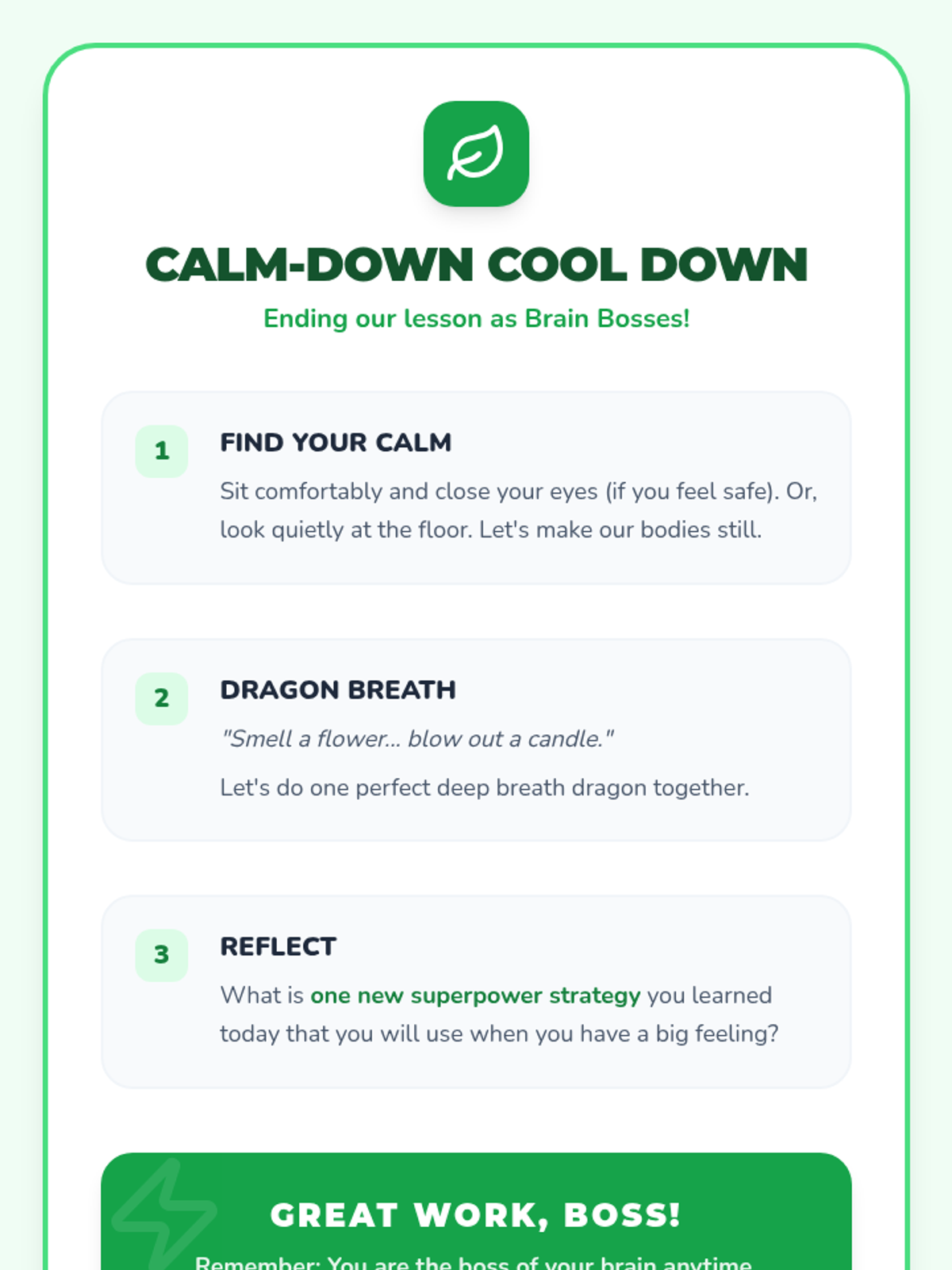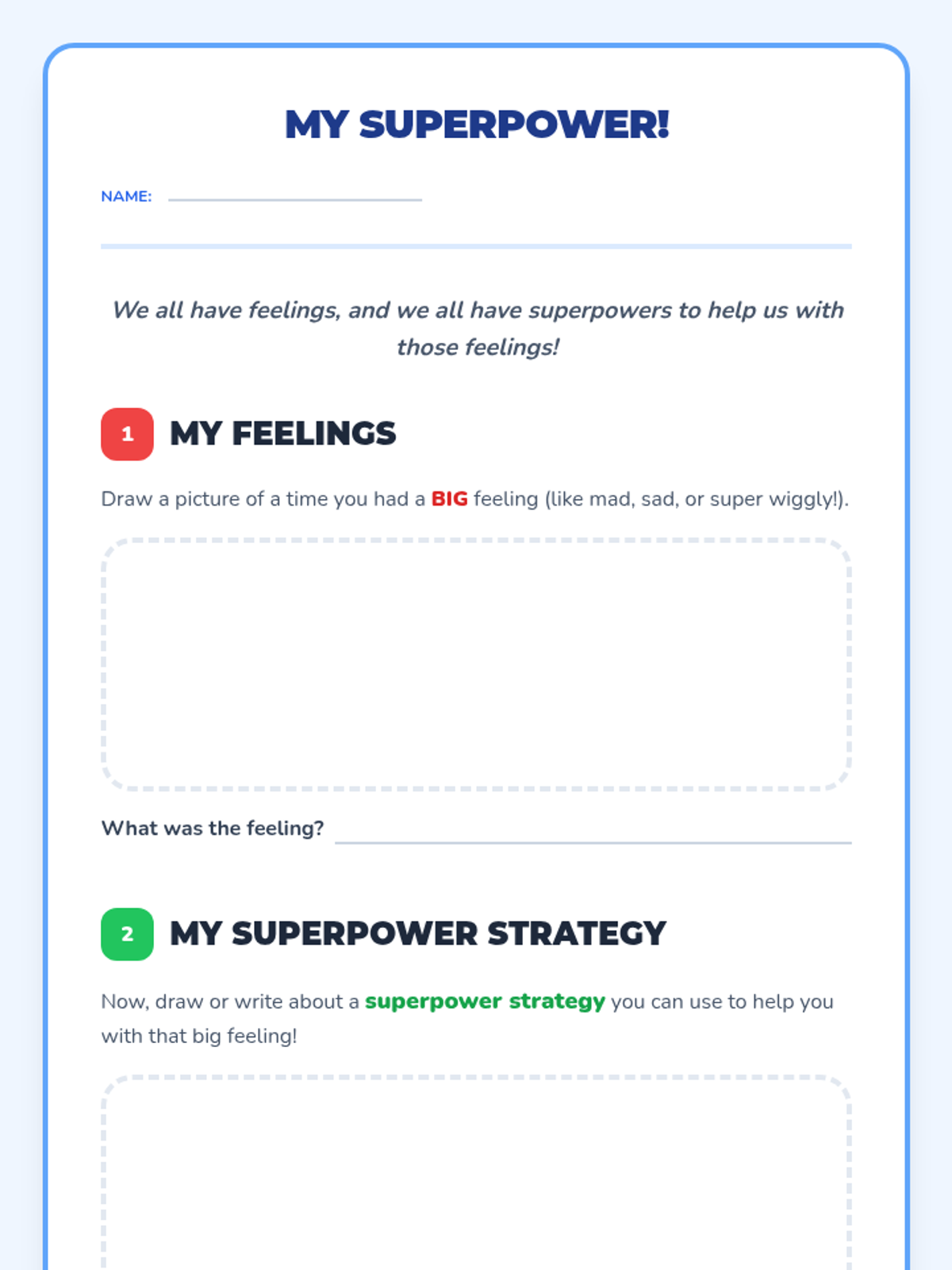 A 30-minute introductory lesson for first graders on self-regulation, using a 'superpower' theme to help them manage big feelings and stay in control of their actions.