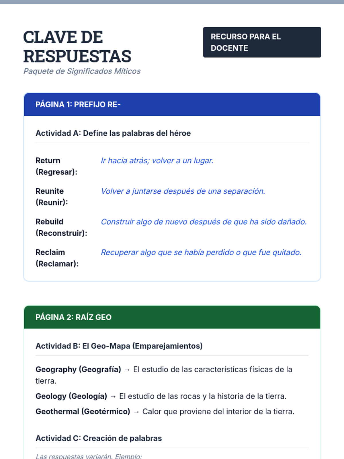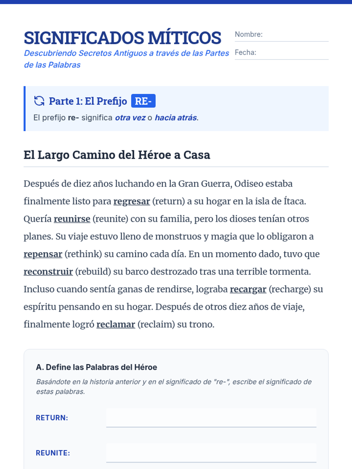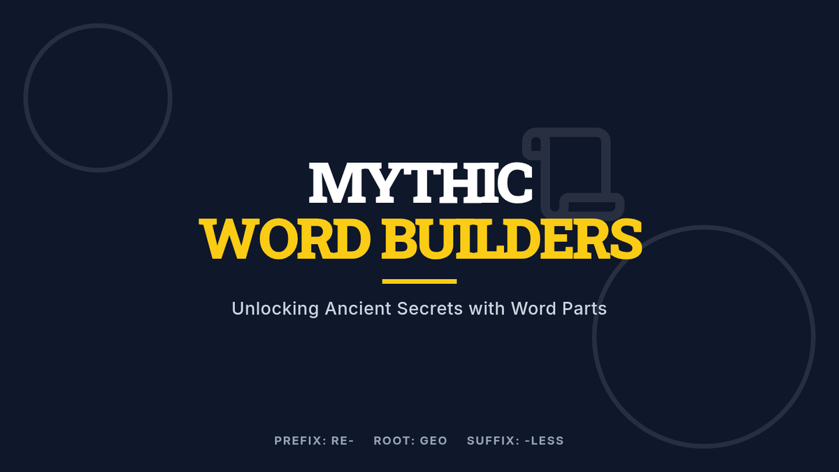 A focused study on the prefix 'RE-', the root 'GEO', and the suffix '-LESS' through the lens of Greek and Roman mythology. Students will read myth-inspired stories and complete activities to master these common word parts.