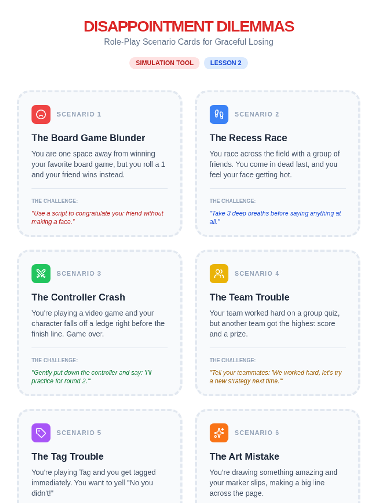 A fun, interactive lesson where 3rd graders practice identifying and applying self-regulation strategies through a board game and BINGO. Students will learn to recognize emotional triggers and choose appropriate 'calm-down' tools.