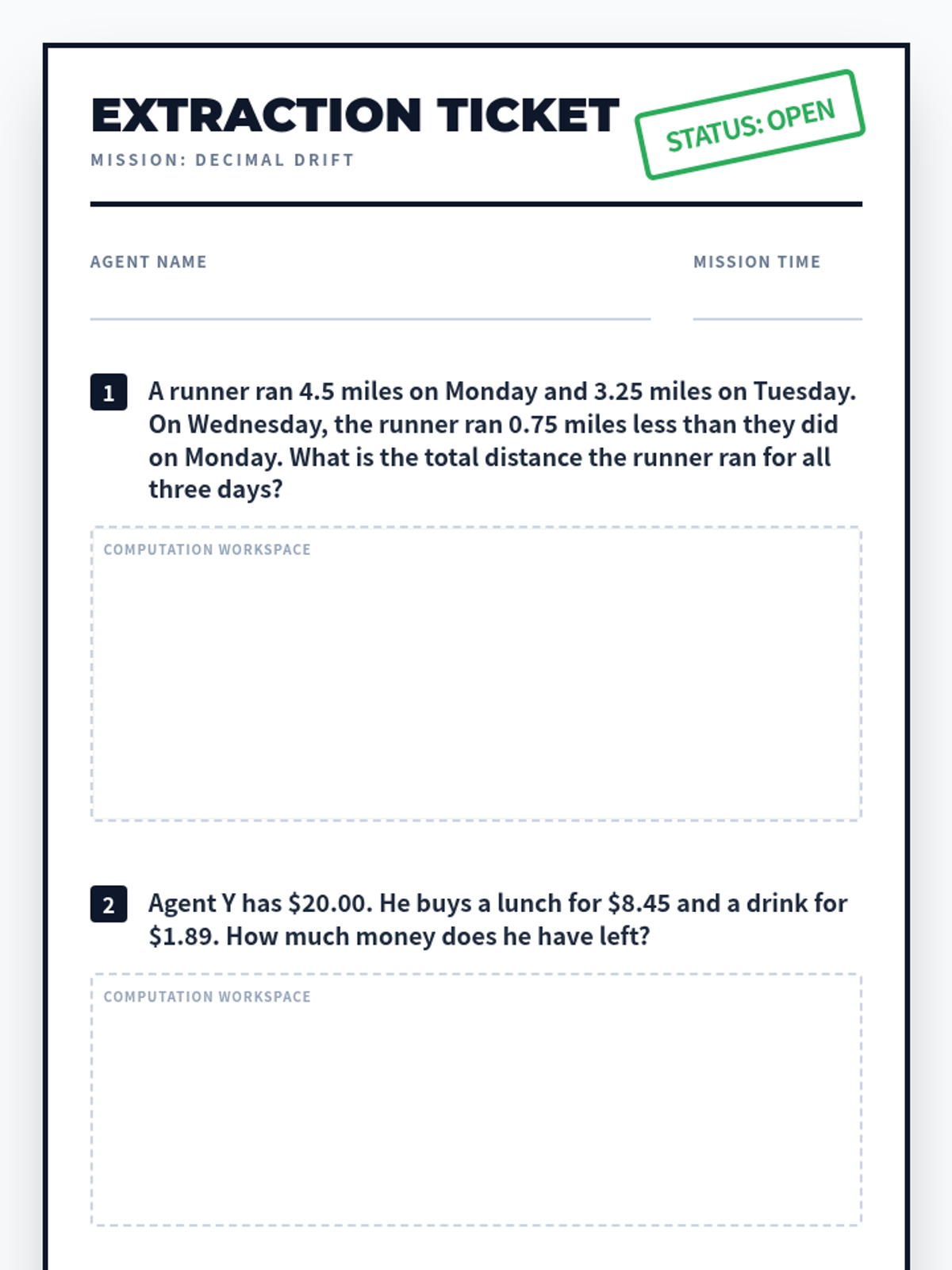 Deep dive into adding and subtracting decimals to the thousandths, including money applications (5.3K).