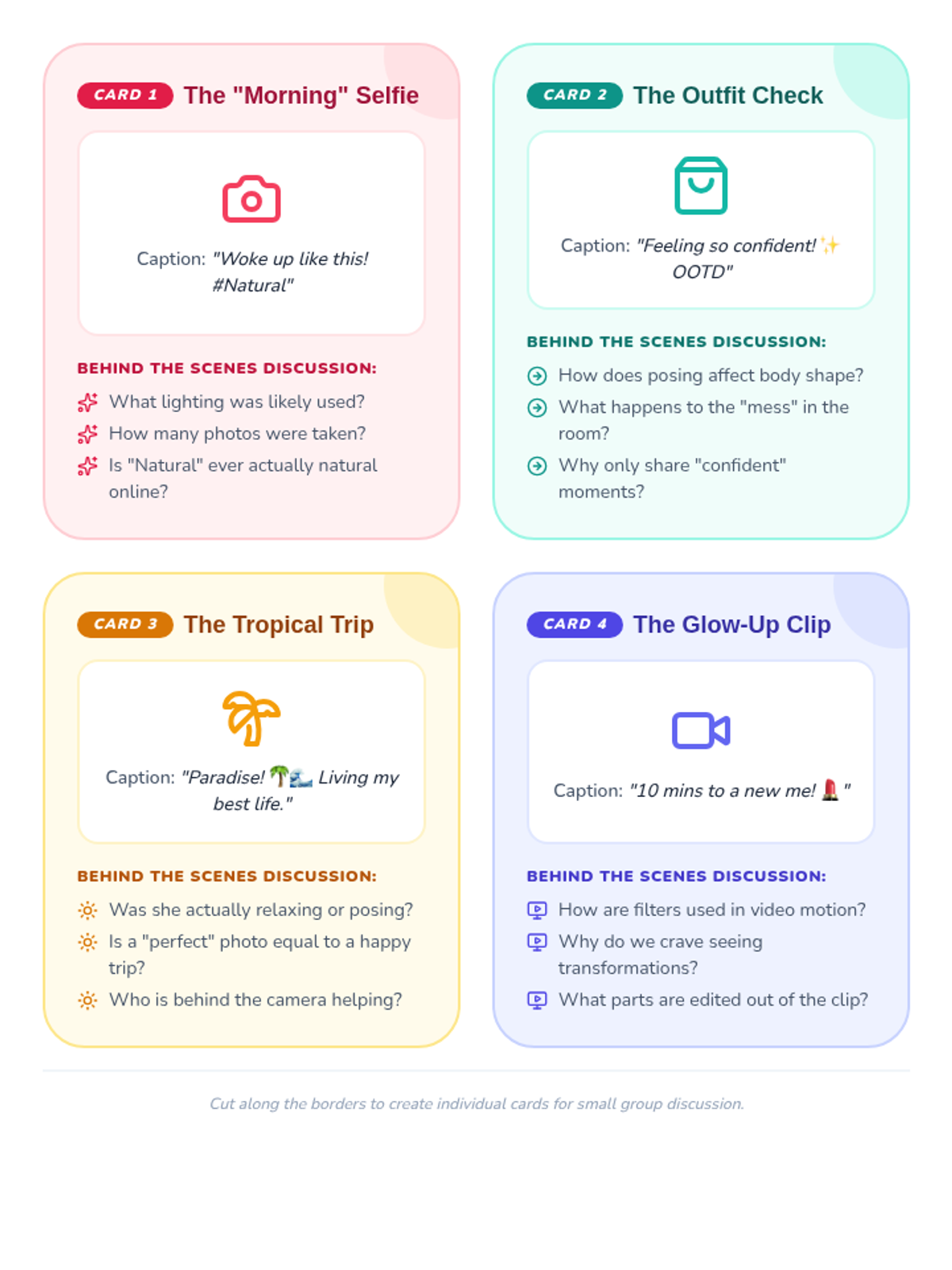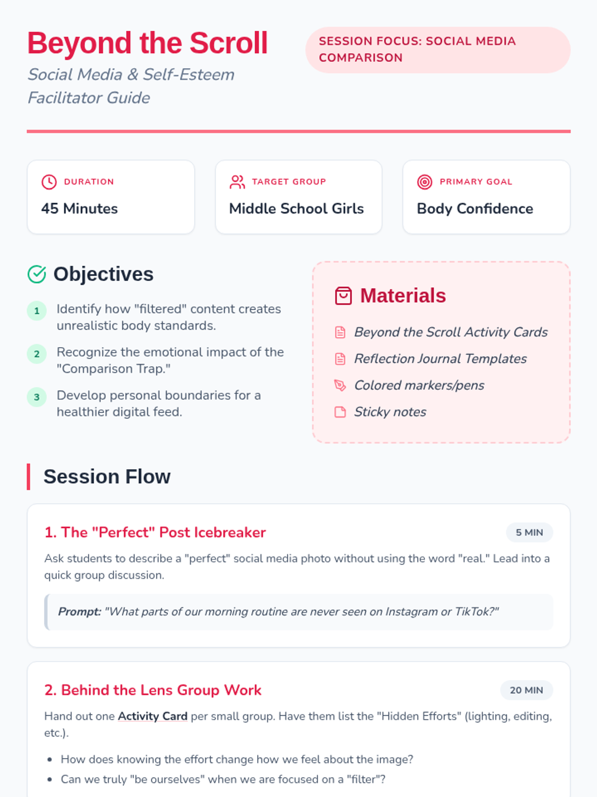 A 45-minute counseling session focused on the impact of social media comparison and body image for middle school girls, featuring group discussions and creative reflection.