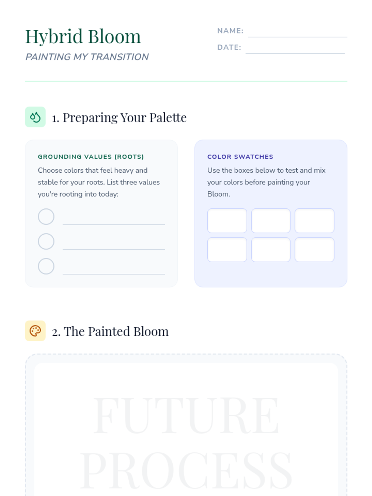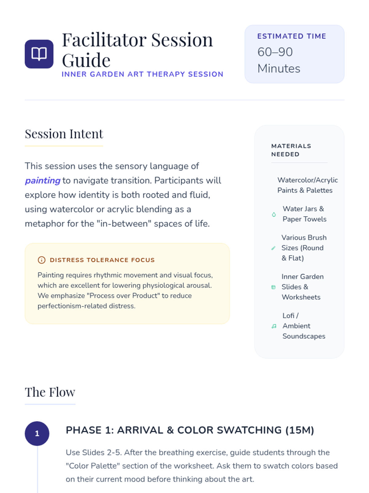 An art therapy session focused on exploring self-identity, navigating emotional transitions, and building distress tolerance through creative expression and mindfulness.