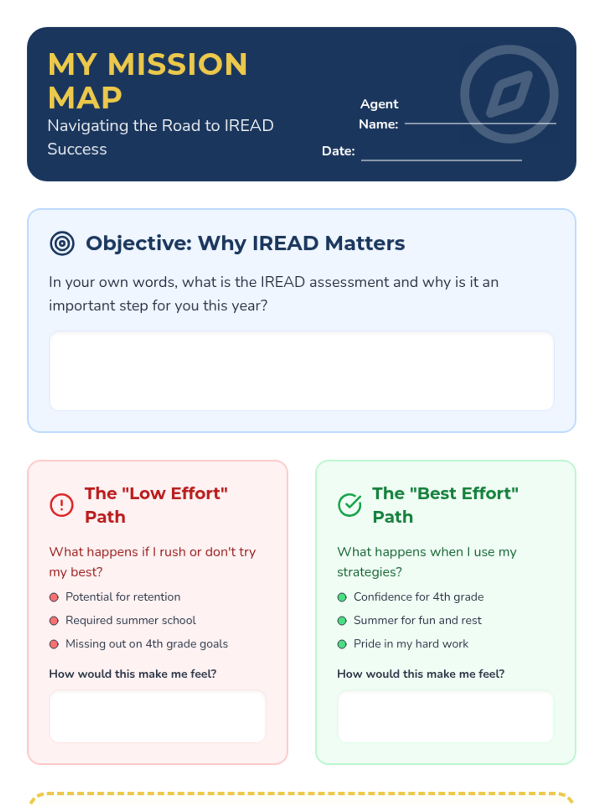 A counseling-focused lesson designed for Tier 2 small groups to understand the significance of the IREAD assessment, its consequences, and the power of personal effort.