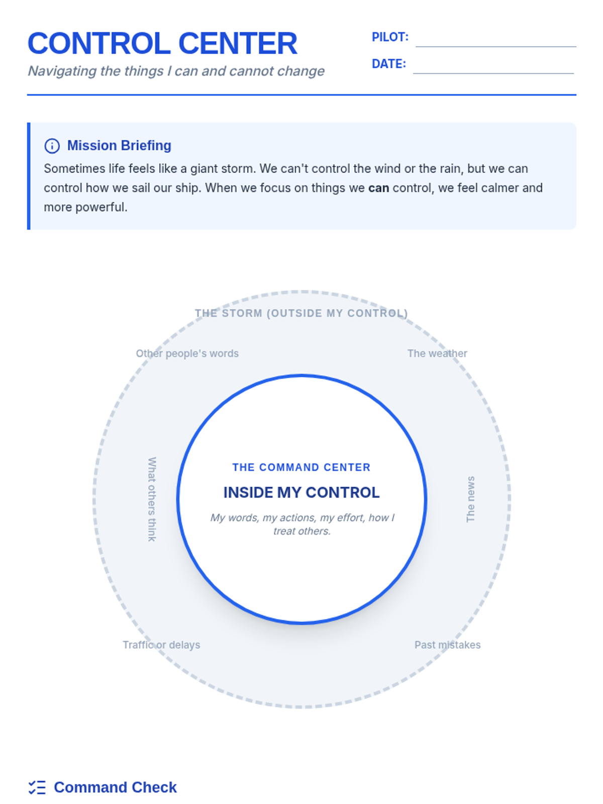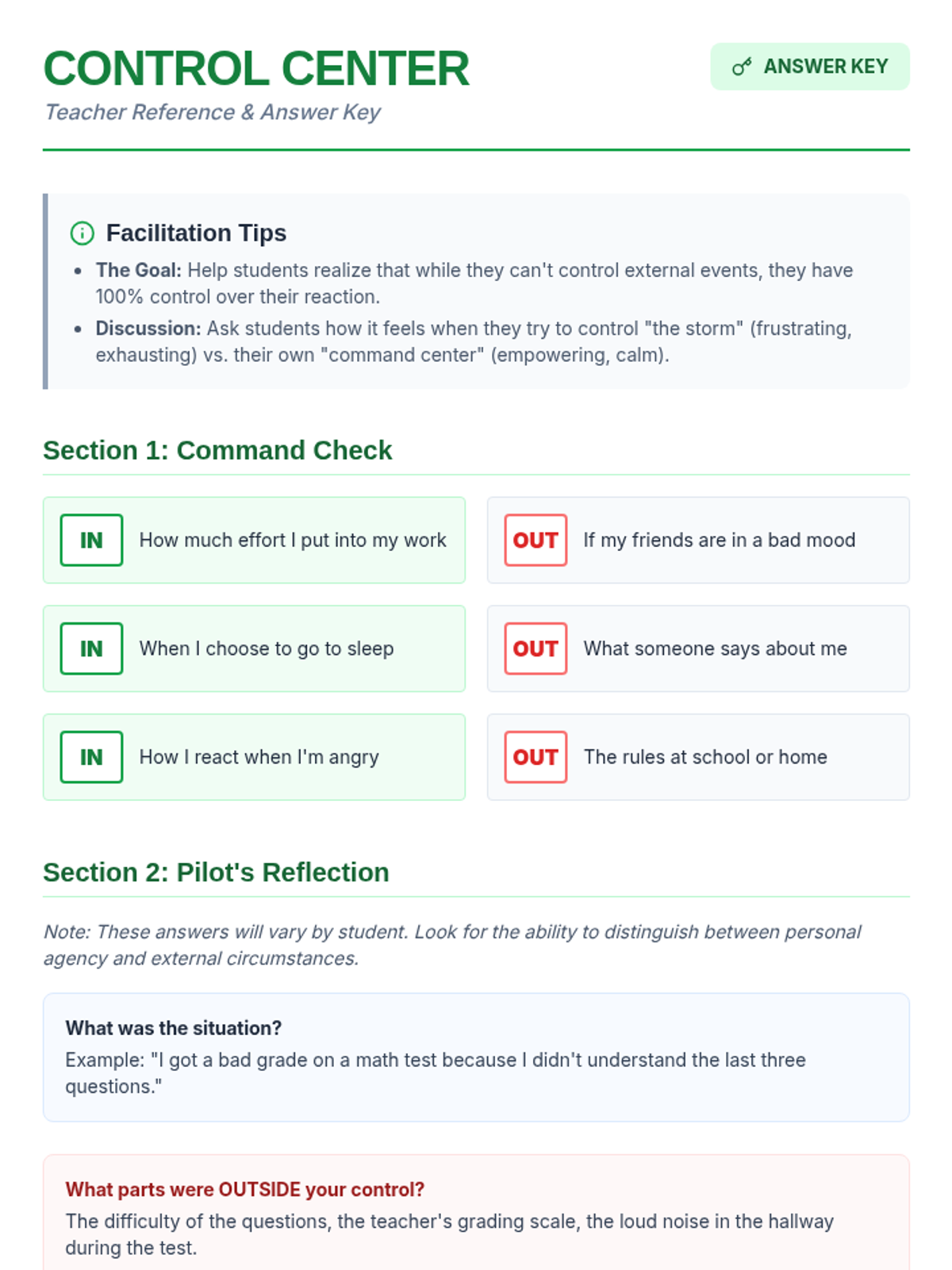 A short, focused activity designed to help students identify what is within their control and what is not, fostering emotional regulation and resilience.