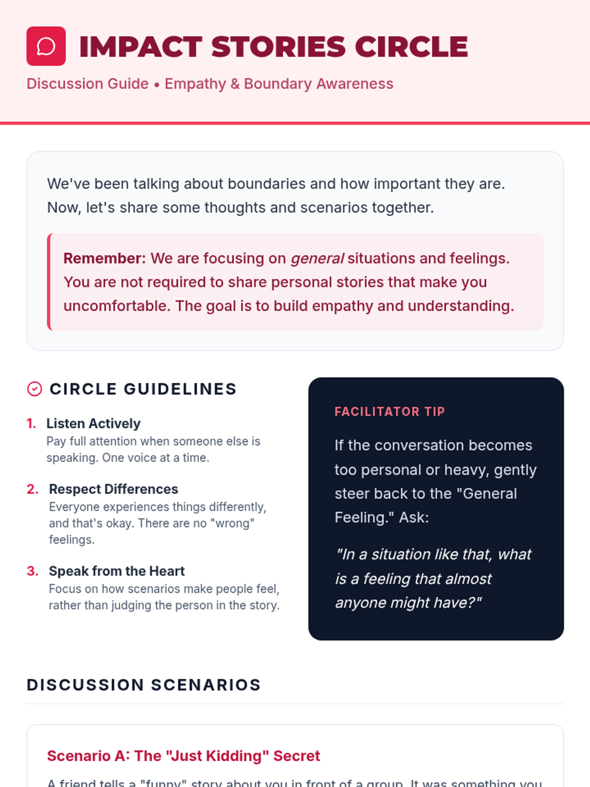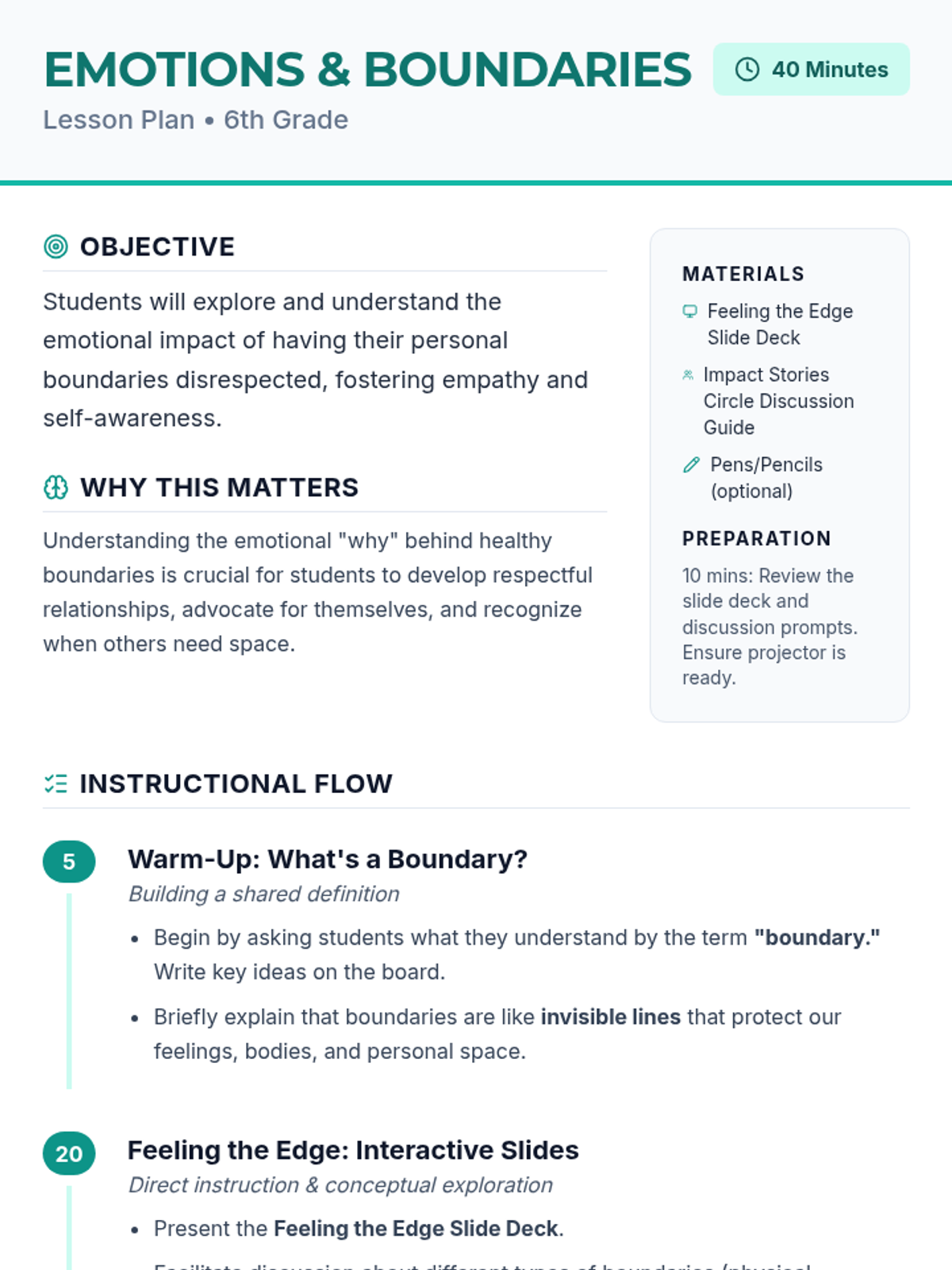 A 40-minute lesson for 6th graders to explore the emotional impact of boundary violations and develop empathy and self-awareness.