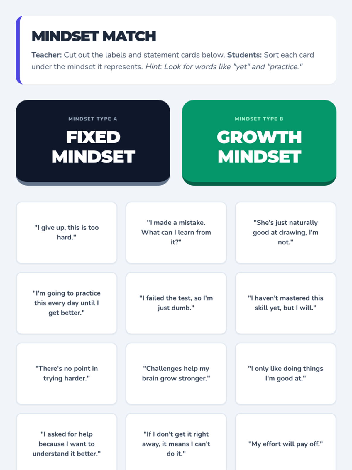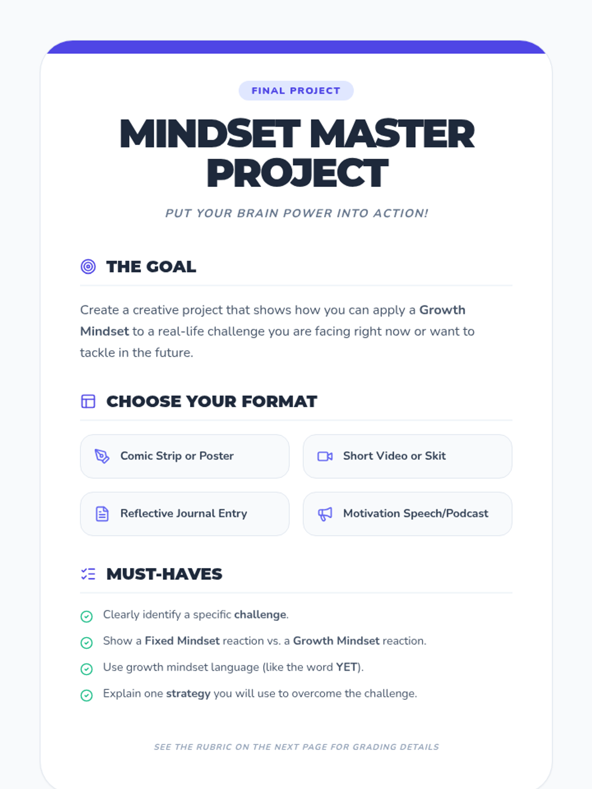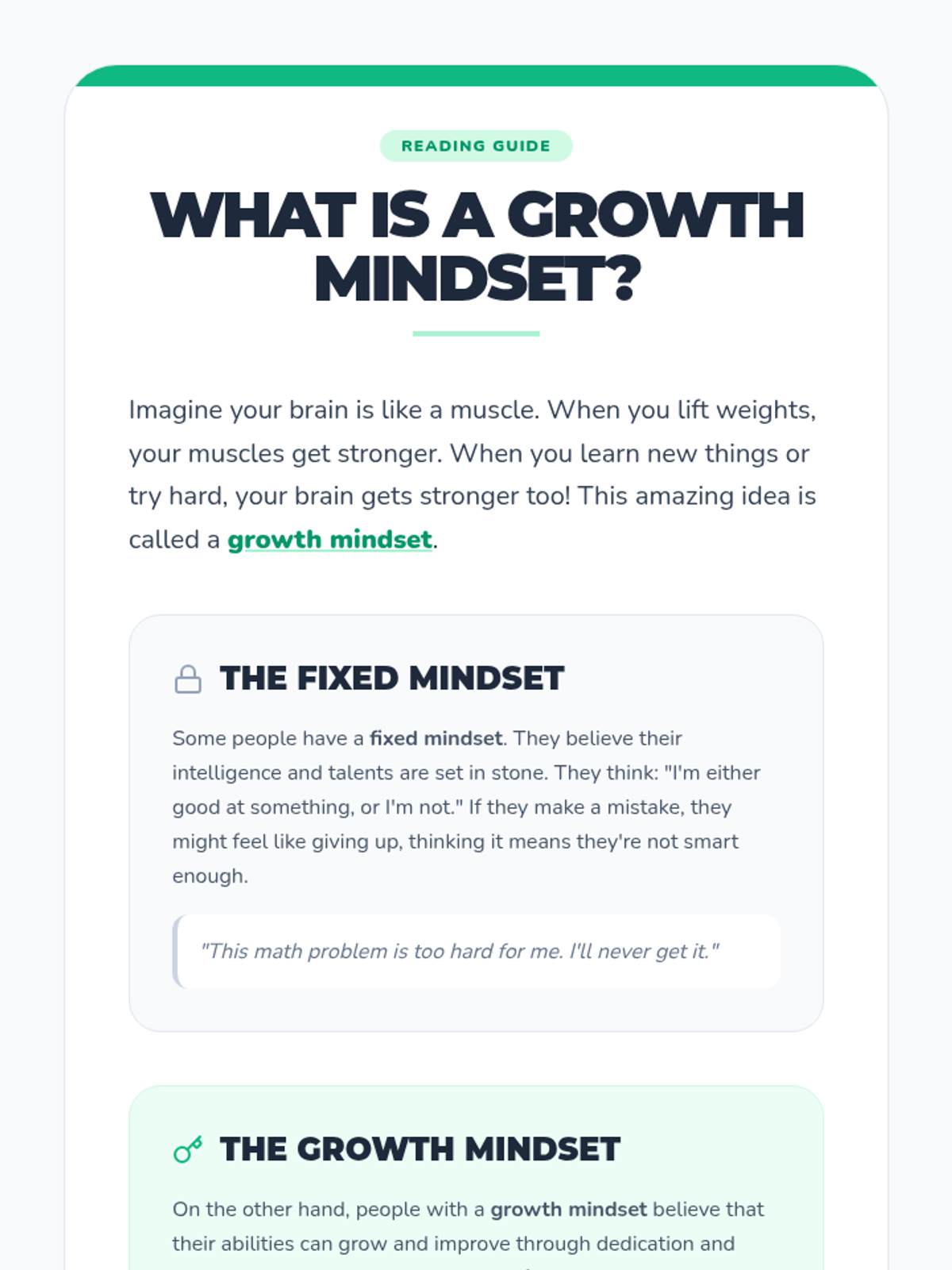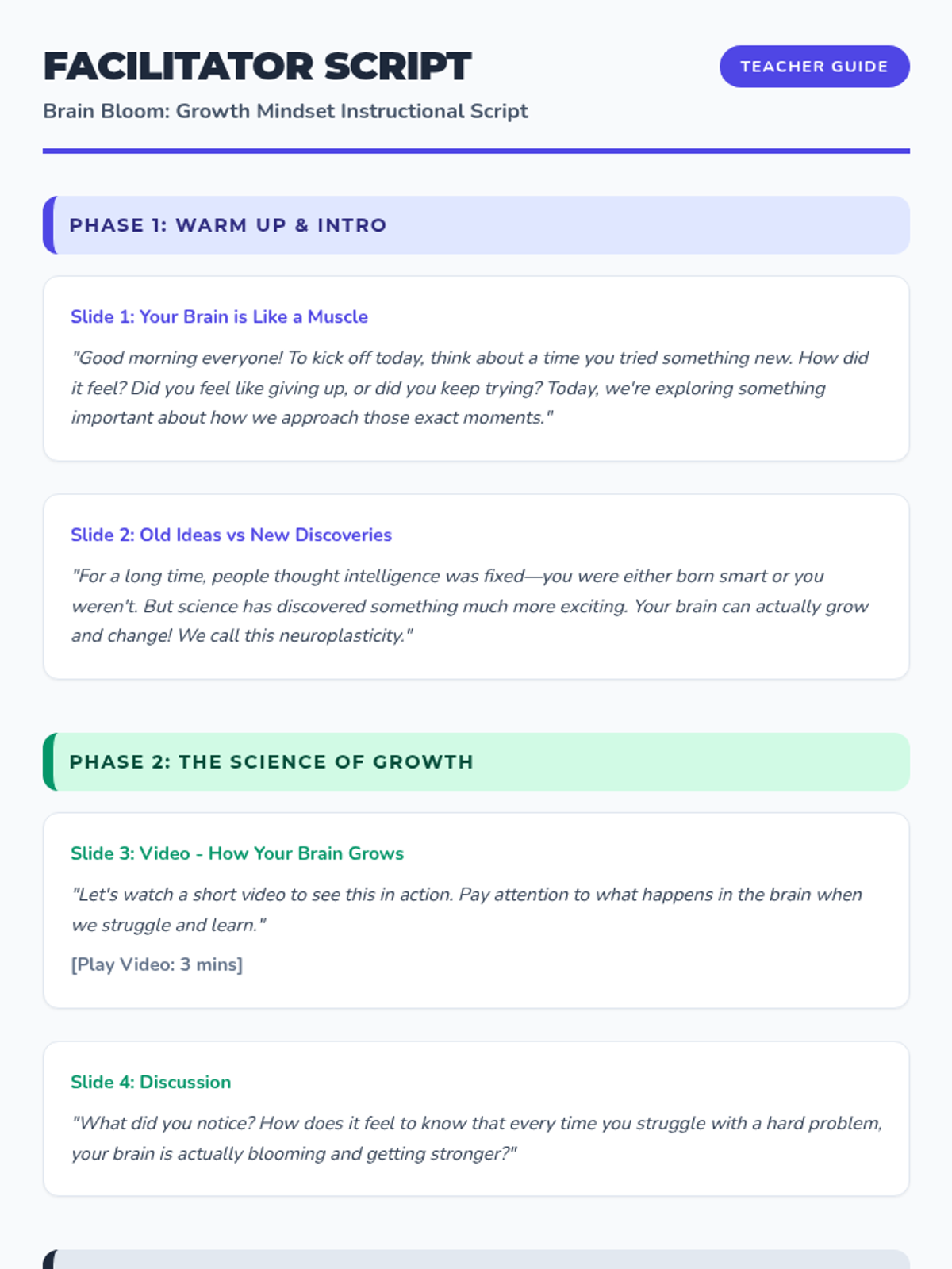 This lesson introduces students to the concept of a growth mindset, explaining the science of neuroplasticity and how effort and learning from mistakes can literally grow the brain. Students will apply these concepts to their own academic and personal challenges.