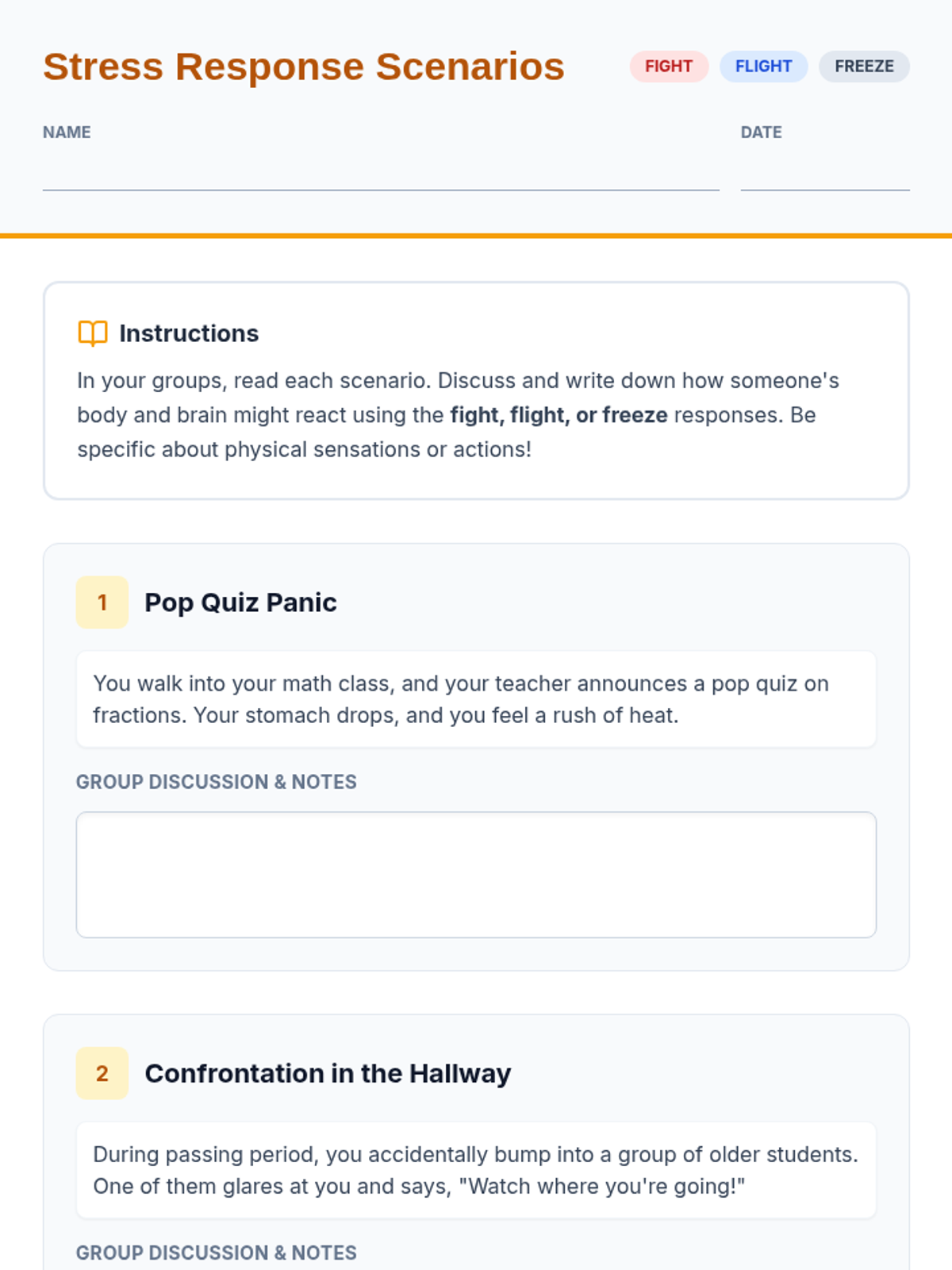 A 50-minute lesson for 7th graders explaining the physiological basis of stress and the 'fight, flight, or freeze' response to help students normalize and manage their emotions.