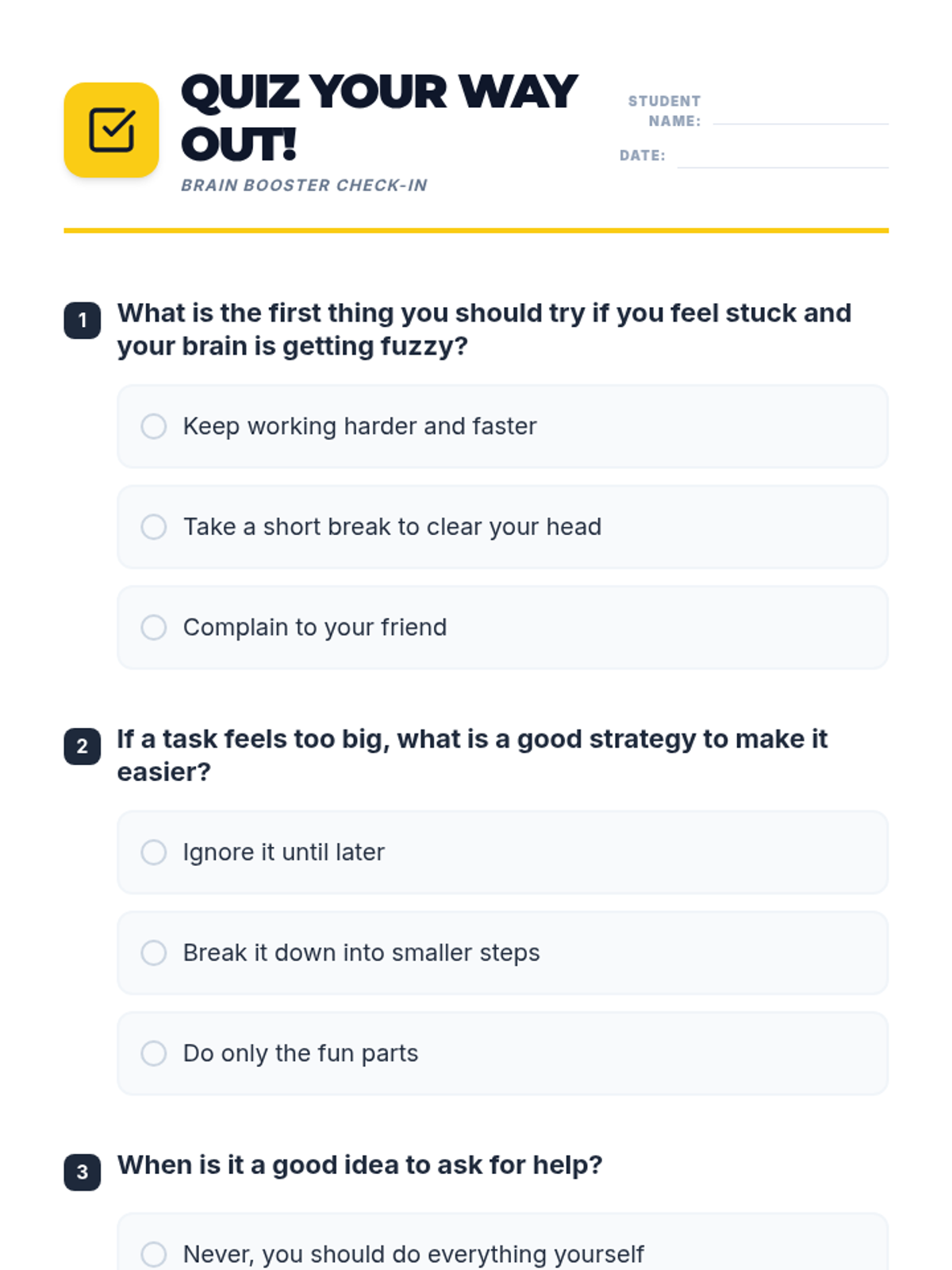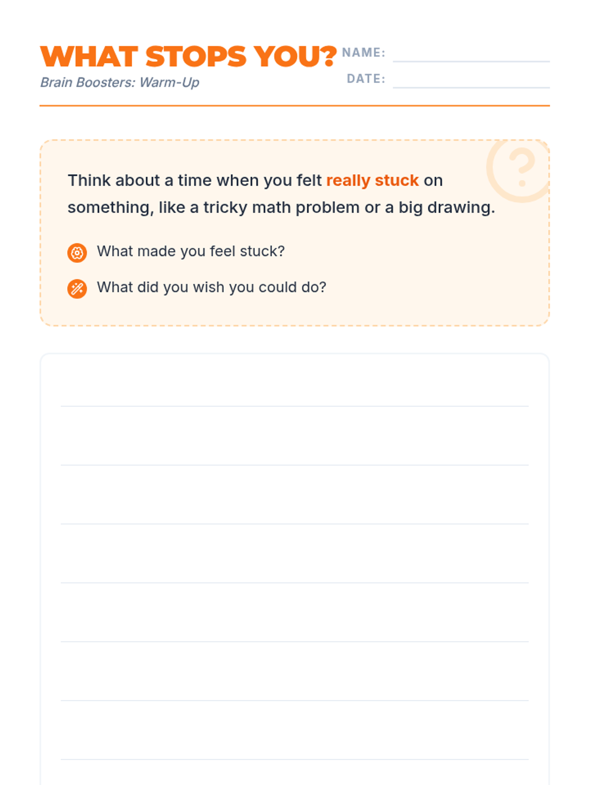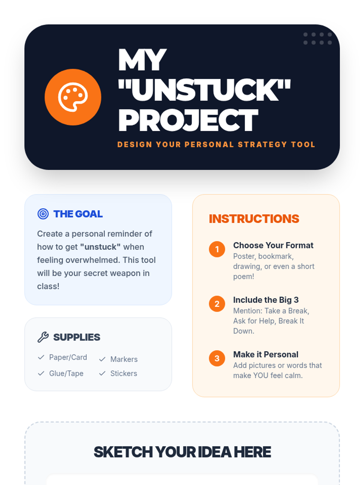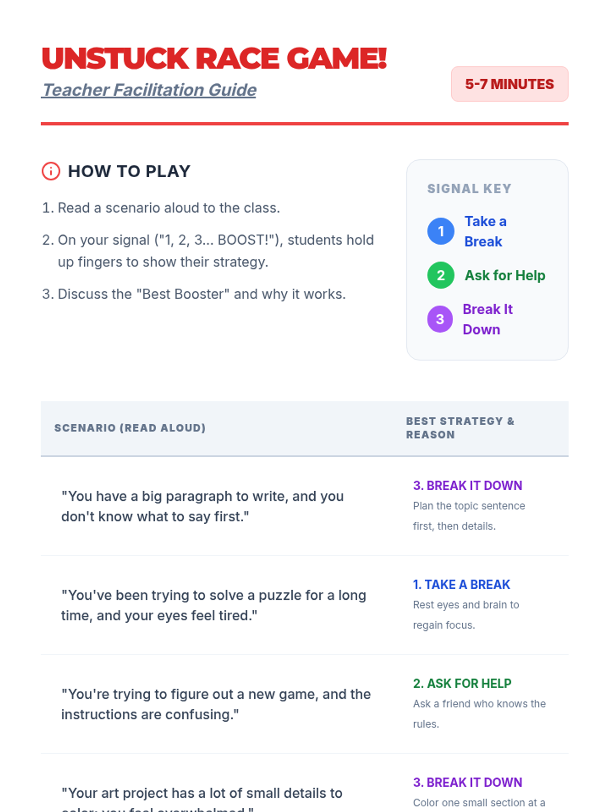 A 15-minute lesson for 4th graders on strategies to overcome feeling overwhelmed and 'stuck' using 'Brain Booster' techniques.