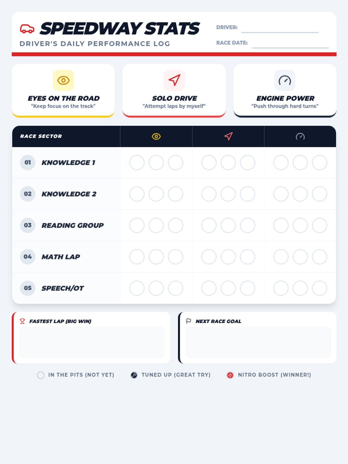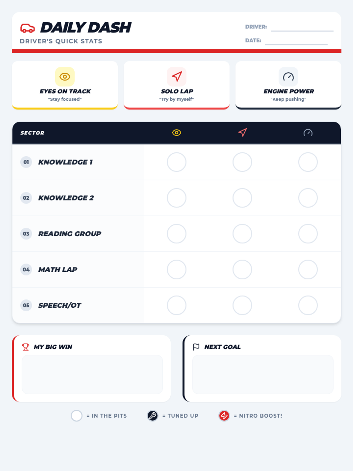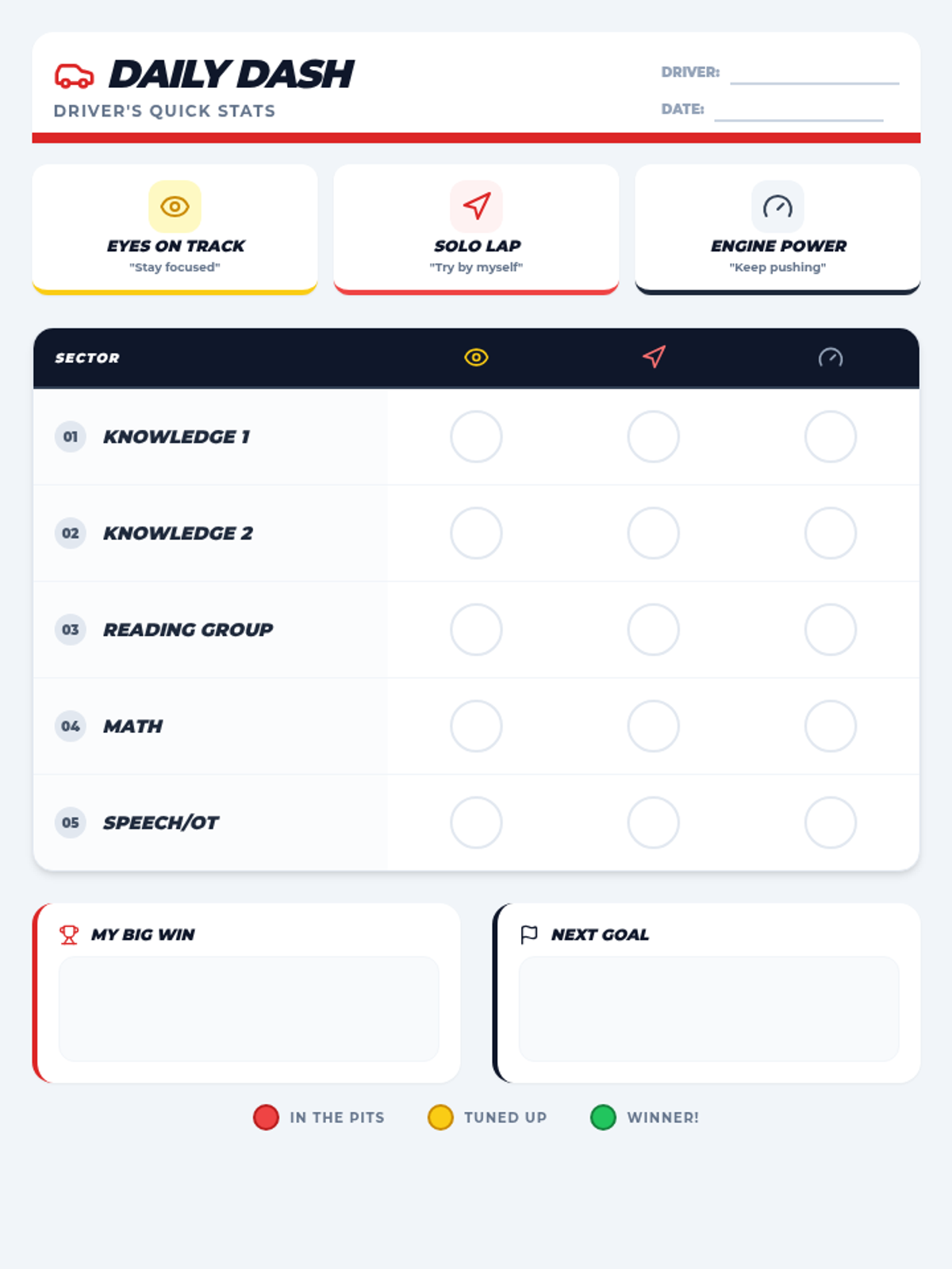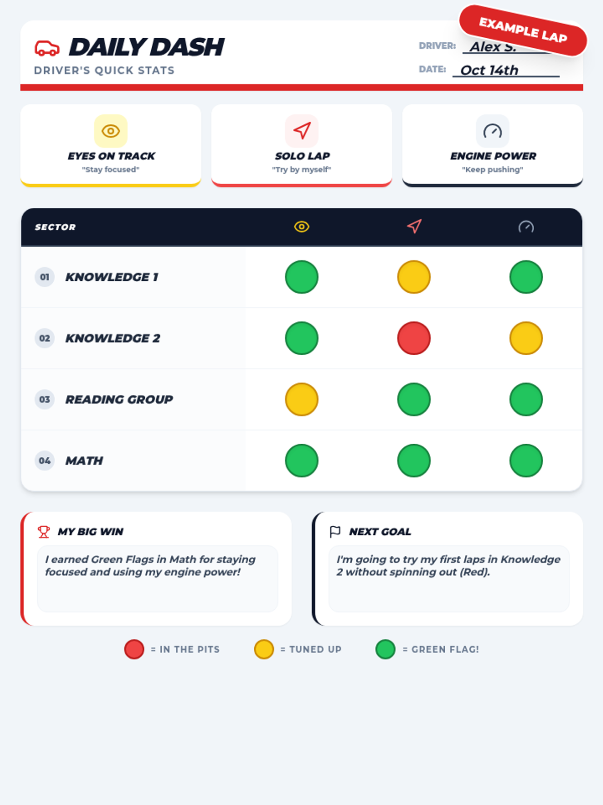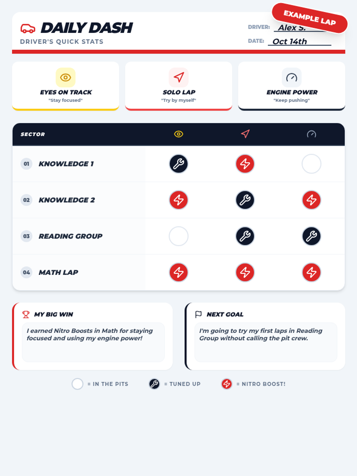 A visual-heavy behavior tracking system designed to help children build self-awareness and effort through daily goal-setting and reflection.