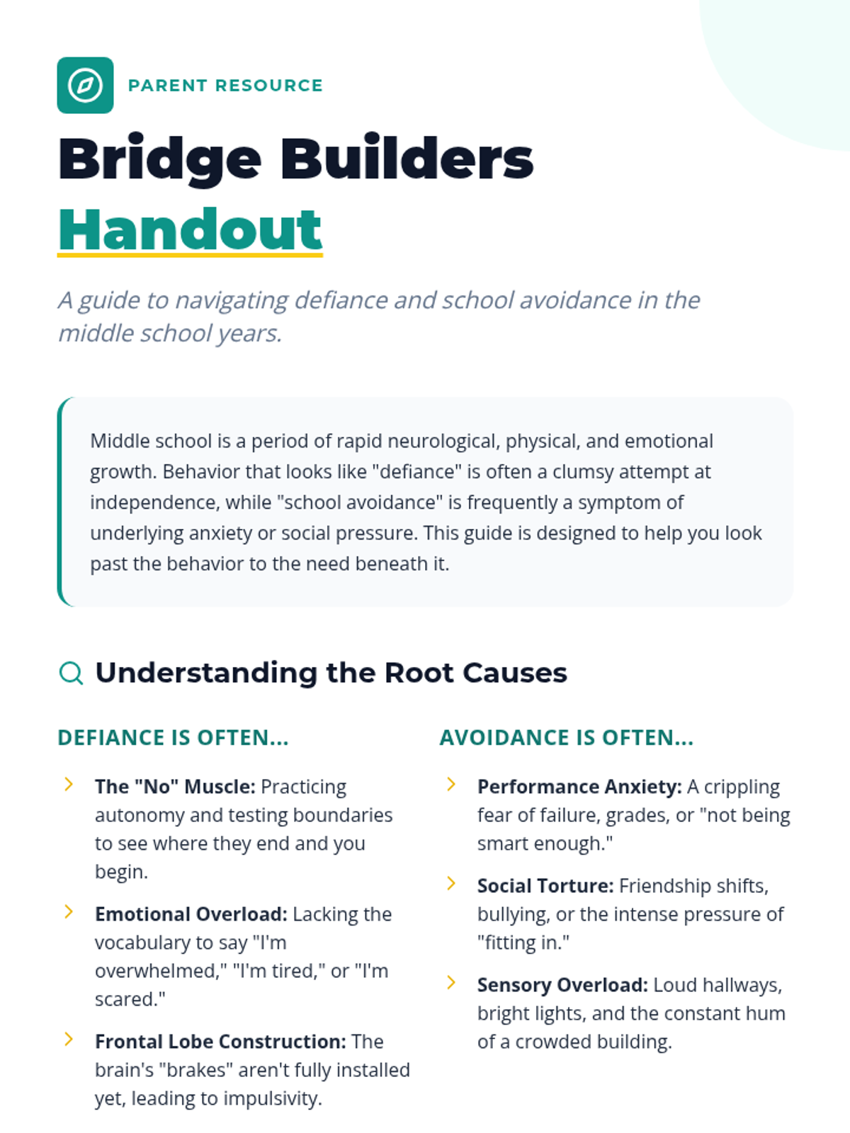 A collection of resources for parents of middle schoolers to navigate defiance and school avoidance with empathy and effective strategies.