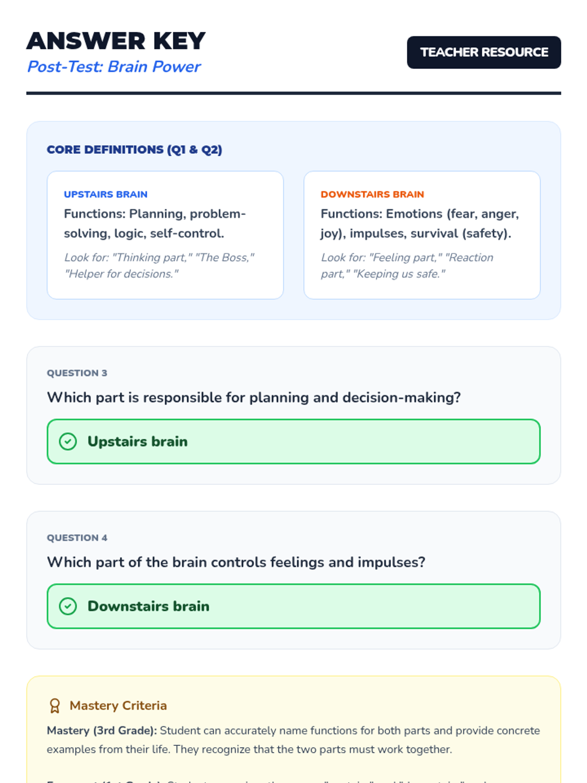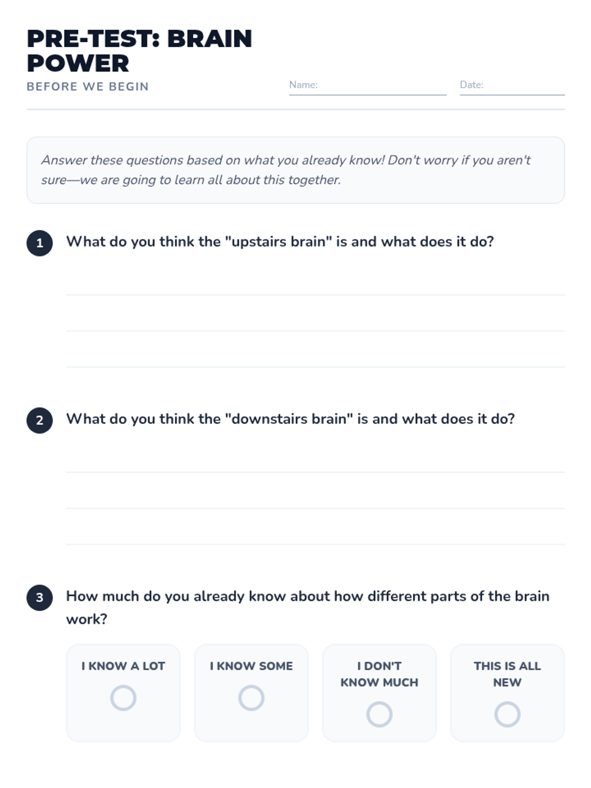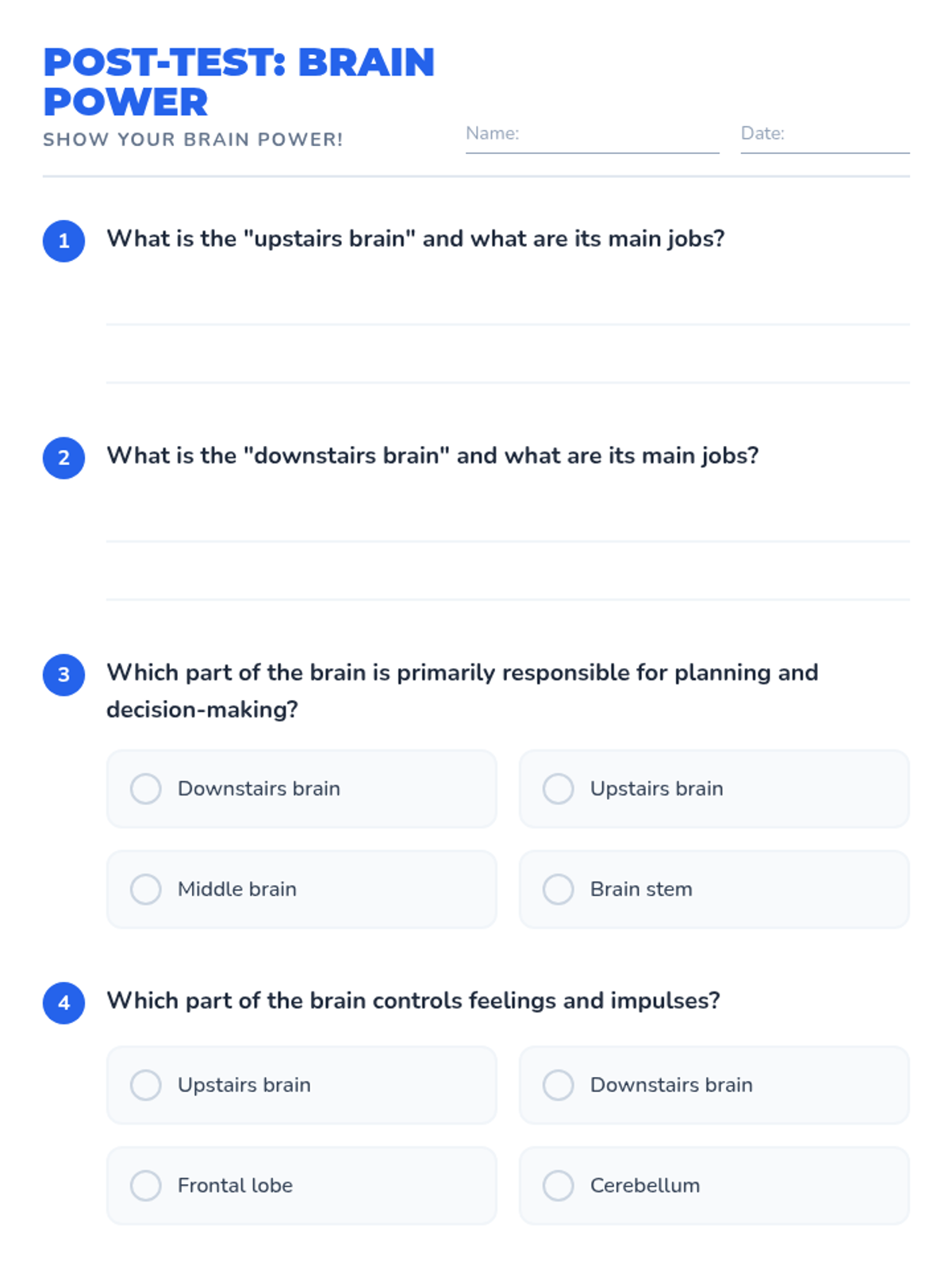 Students learn the difference between the rational 'upstairs brain' and the emotional 'downstairs brain' and how they work together.