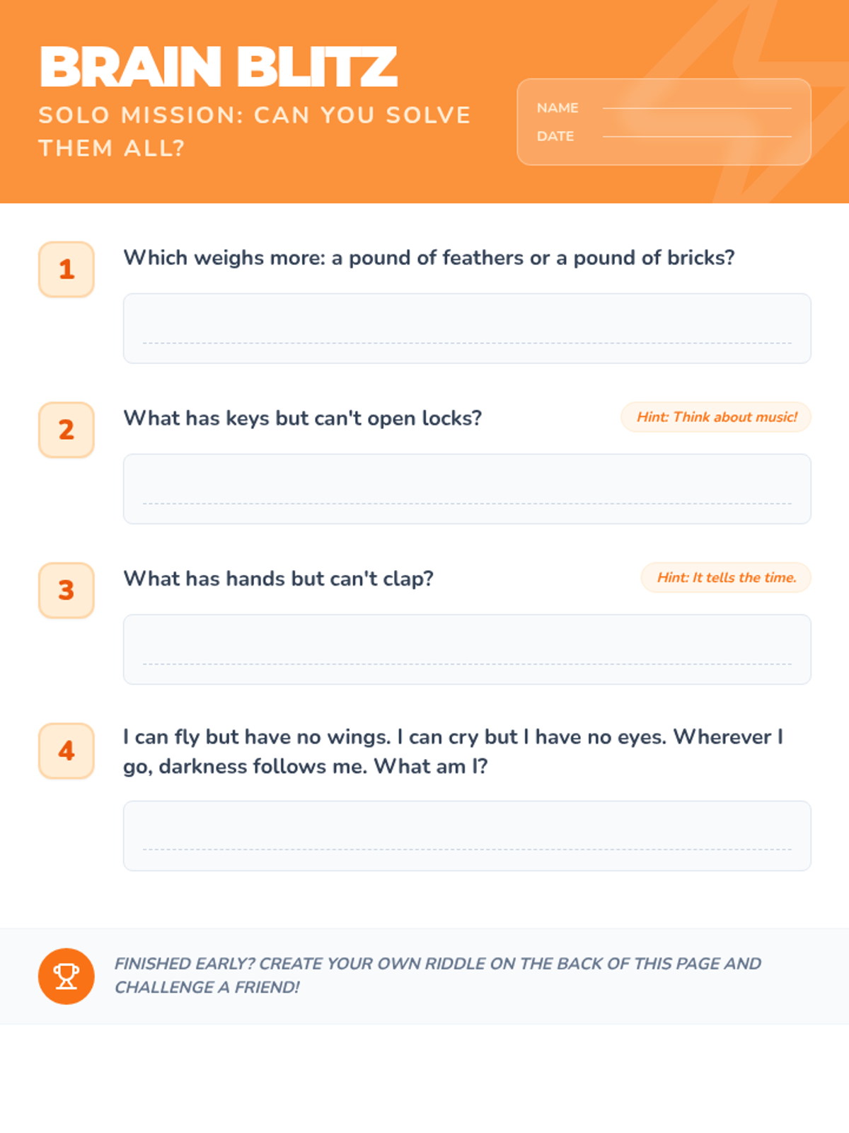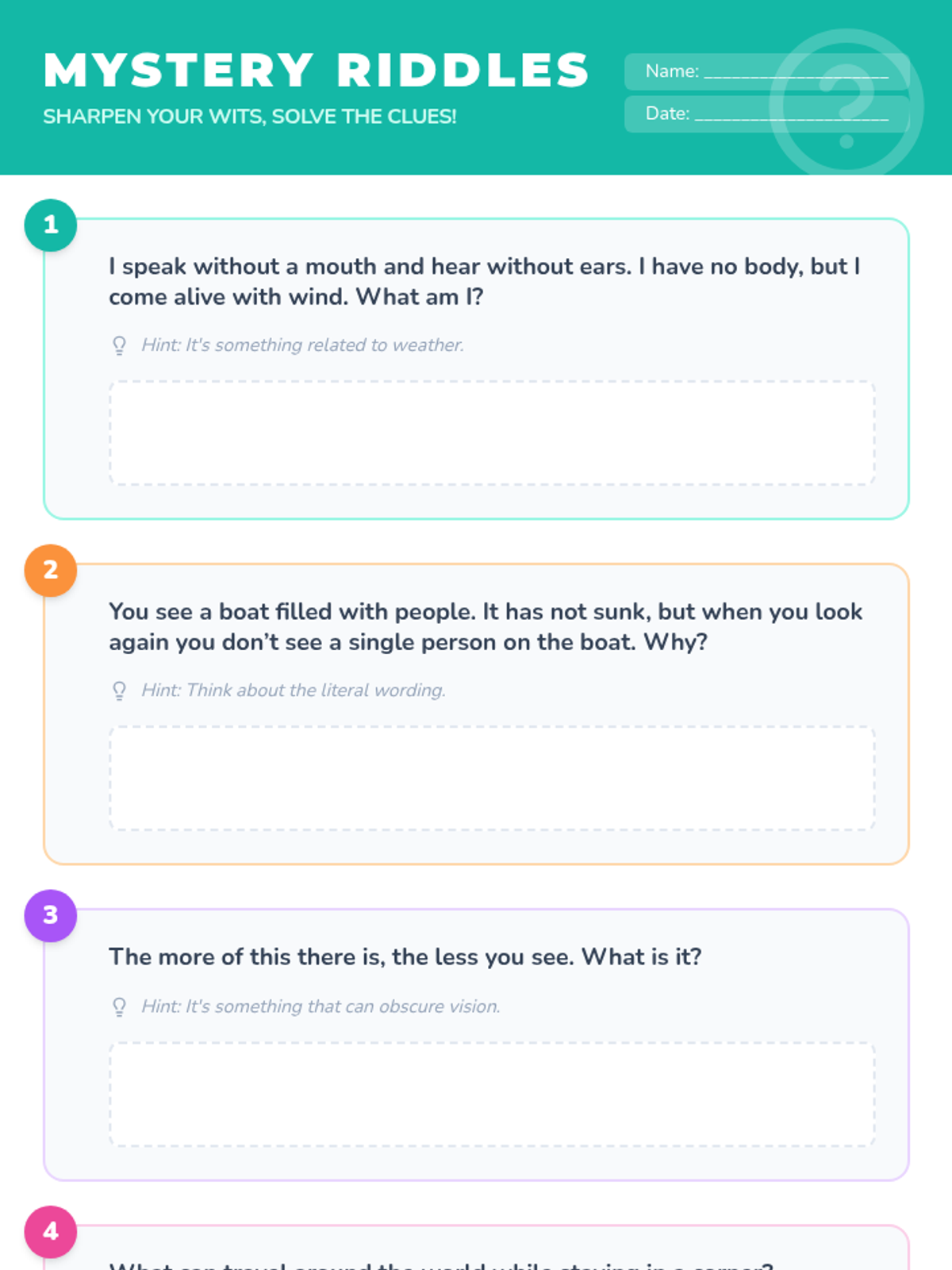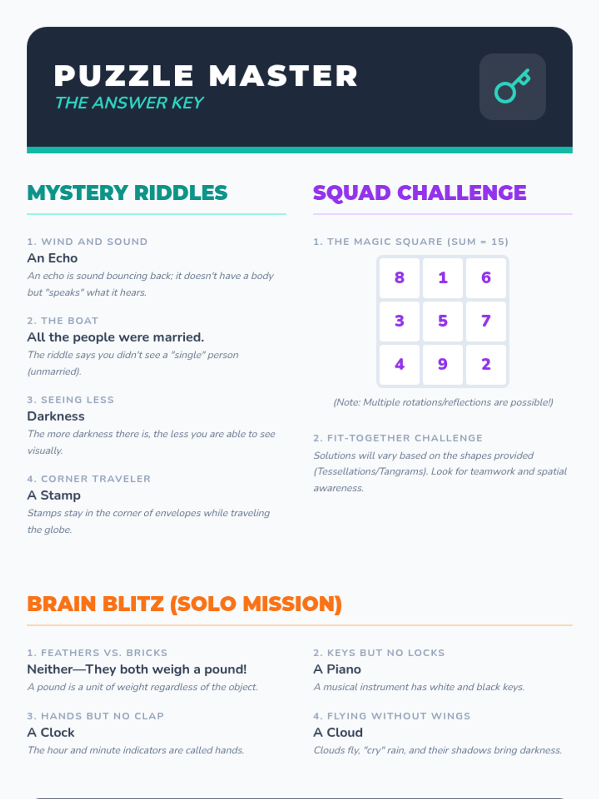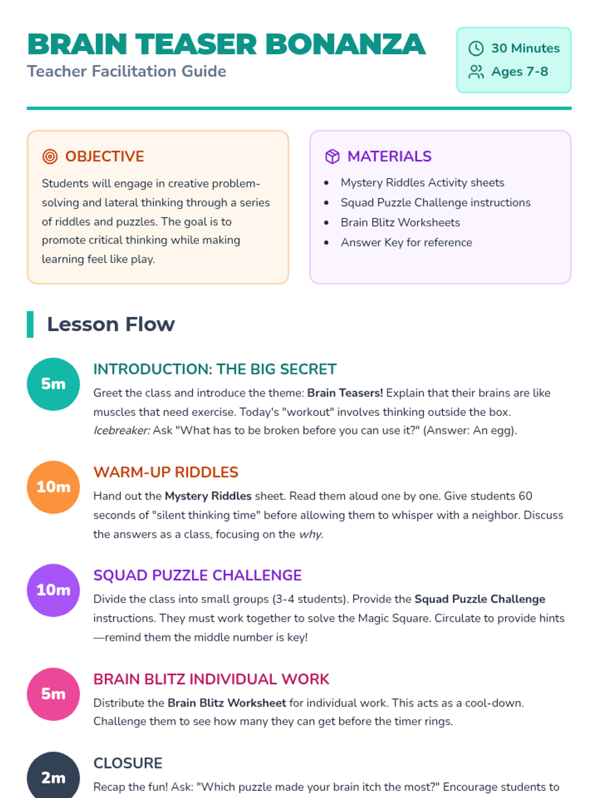 A fun, 30-minute lesson filled with riddles and puzzles designed to sharpen critical thinking and creative problem-solving skills for 7-8 year olds.