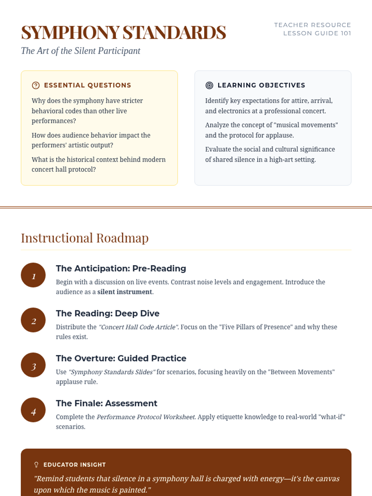 A comprehensive guide for high school students on the nuances of professional symphony orchestra etiquette, focusing on the history, expectations, and the collective experience of live classical music.