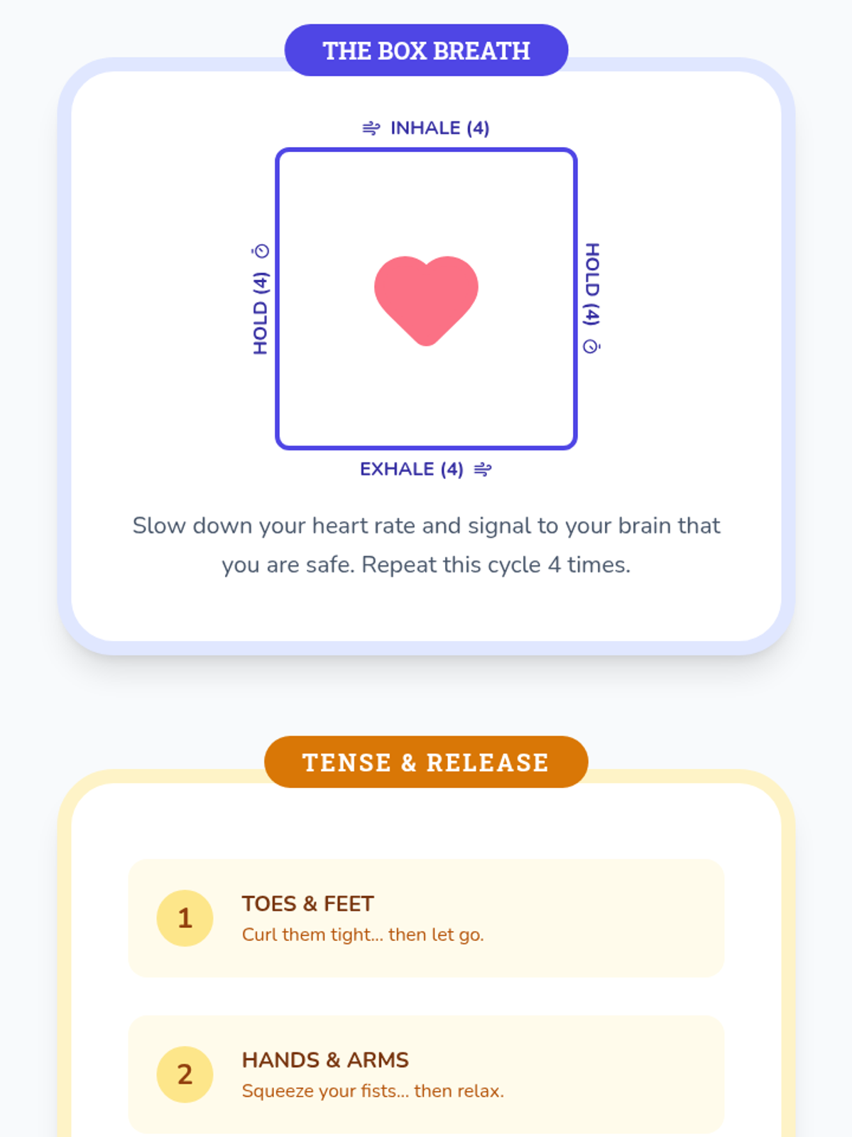 Instruction on Box Breathing and Progressive Muscle Relaxation (PMR) to physically downregulate the nervous system.