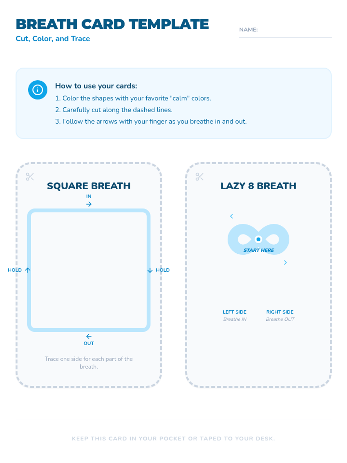 Students design and practice using a portable 'Breath Card' that combines visual tracing with deep breathing techniques.