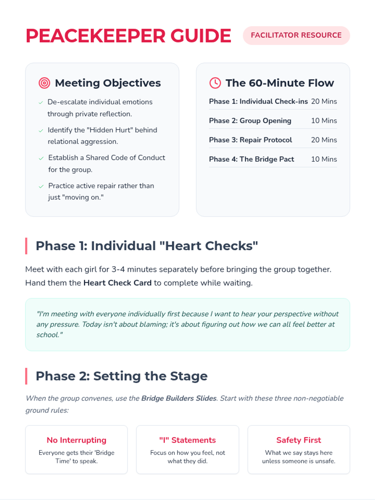 A restorative lesson designed for a small group of 5th-grade girls to address relational aggression, exclusion, and collaborative conflict resolution through individual reflection and a guided group peace-building protocol.