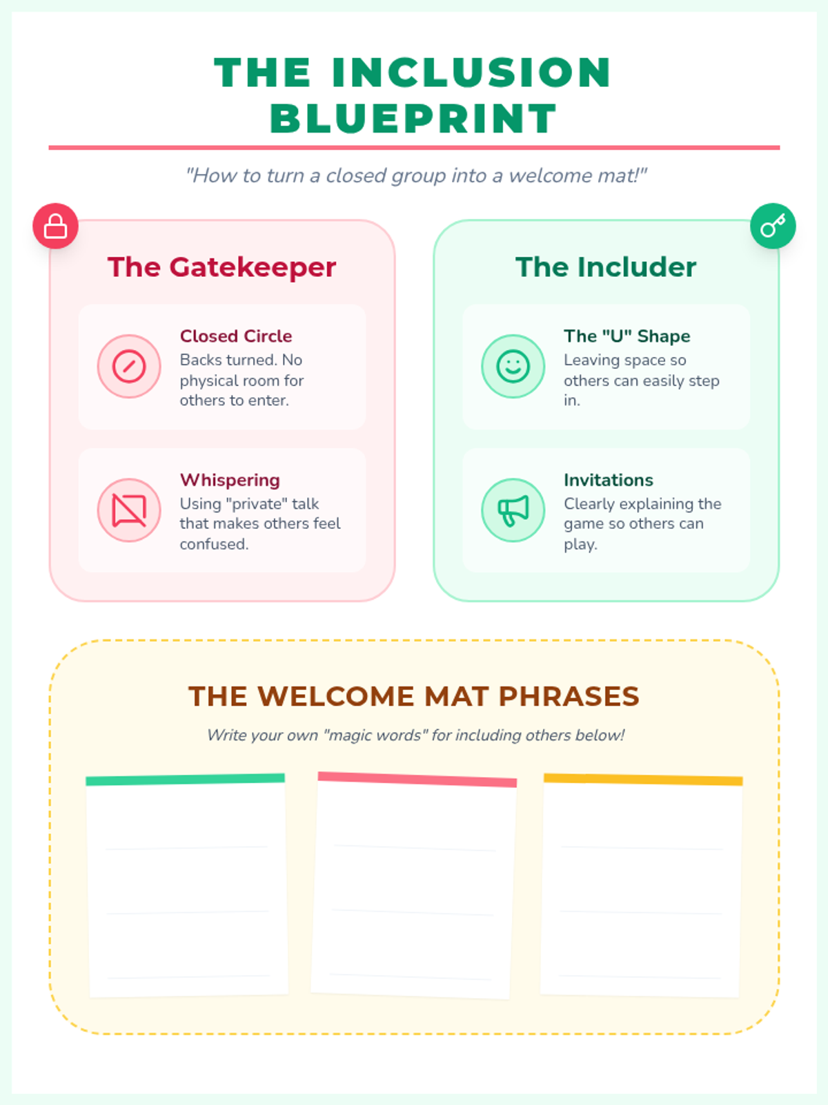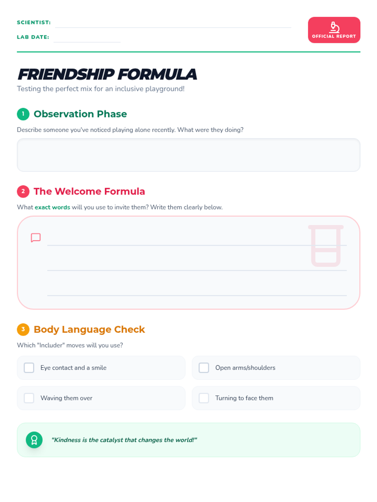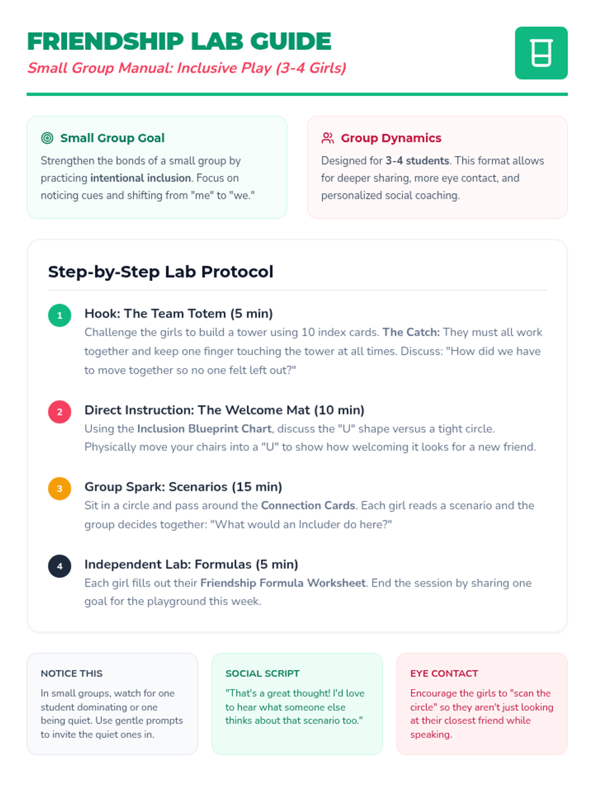 A collaborative lunch bunch lesson for 3rd and 4th-grade girls focused on building inclusive social habits and mastering the art of making new friends through the lens of a 'Friendship Lab.'