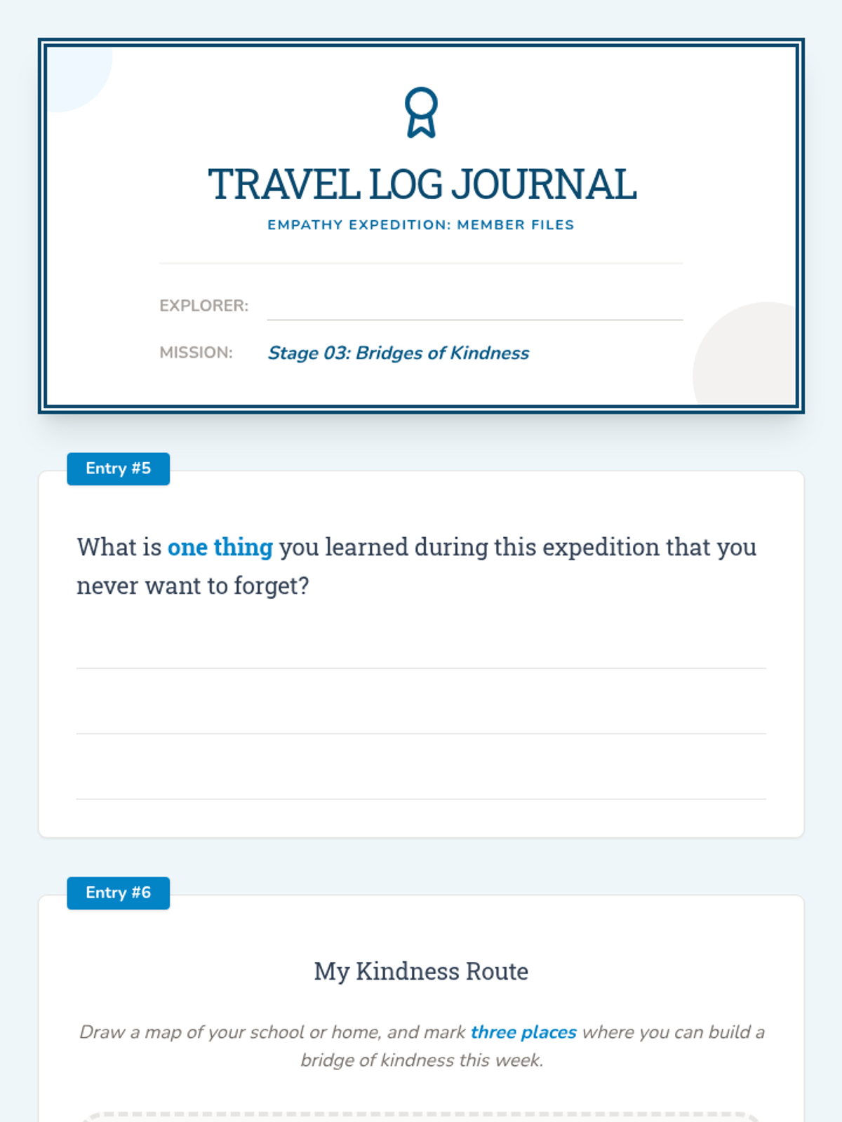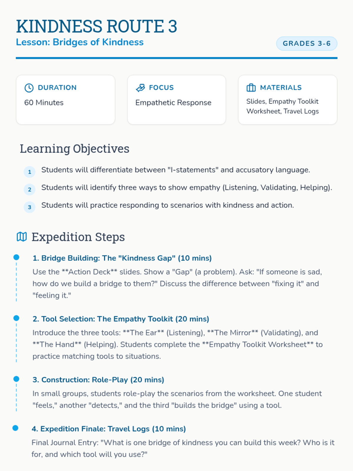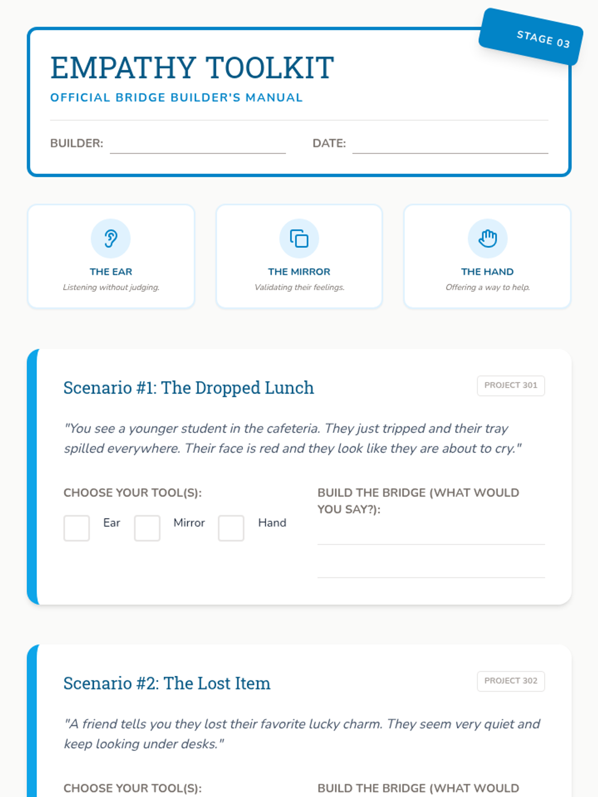 Transitions from understanding to action, teaching students how to respond with empathy and build bridges of kindness in their communities.