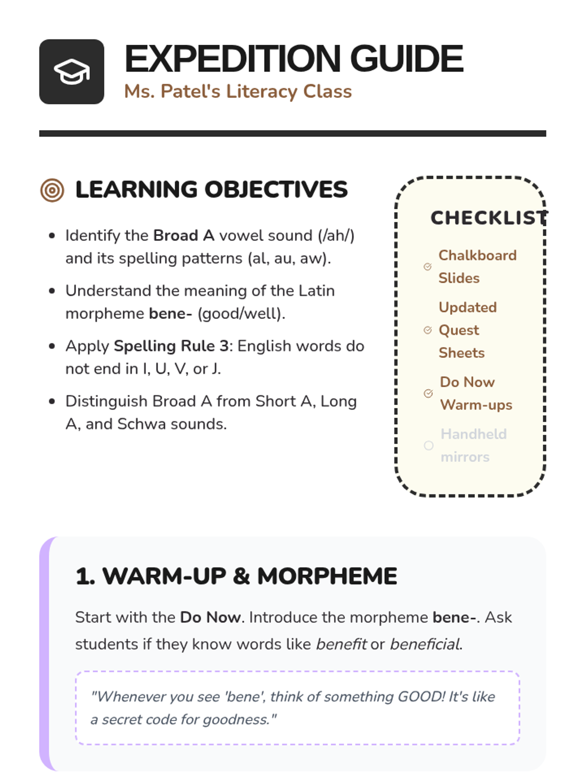 A lesson focused on breaking down complex vocabulary into morphological building blocks. Students explore word origins and connections using a blueprint and construction theme.