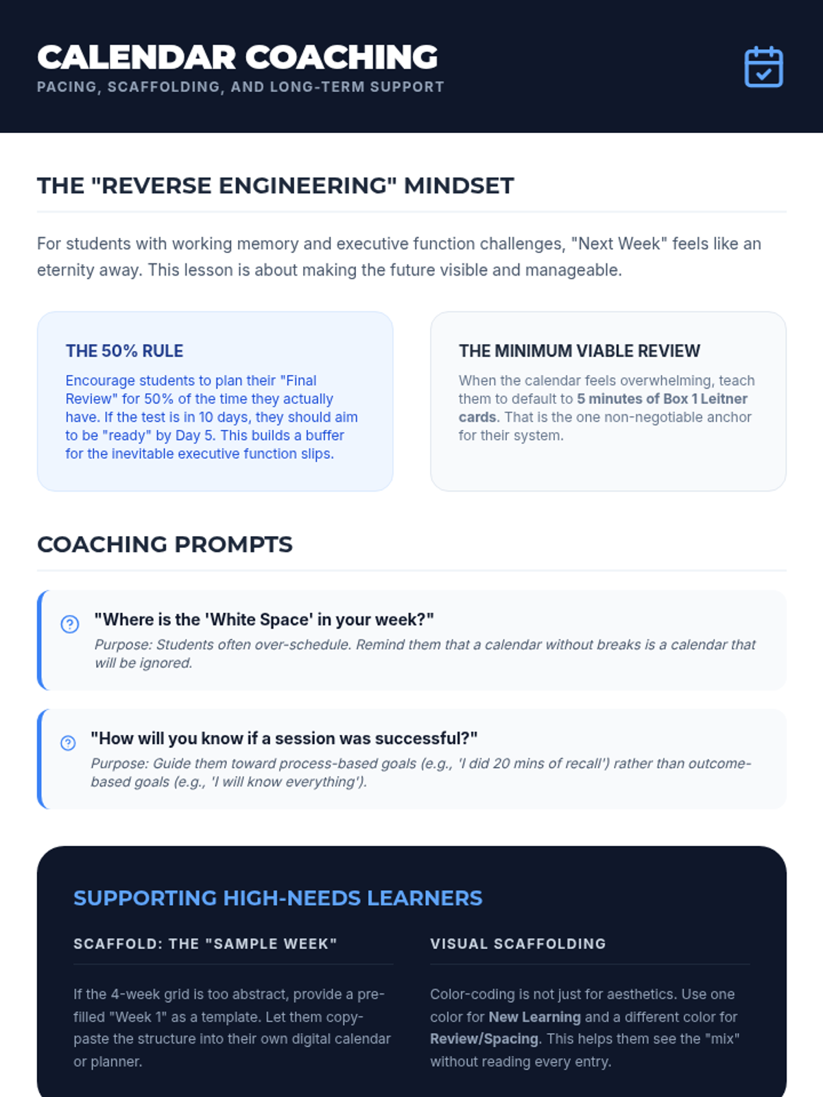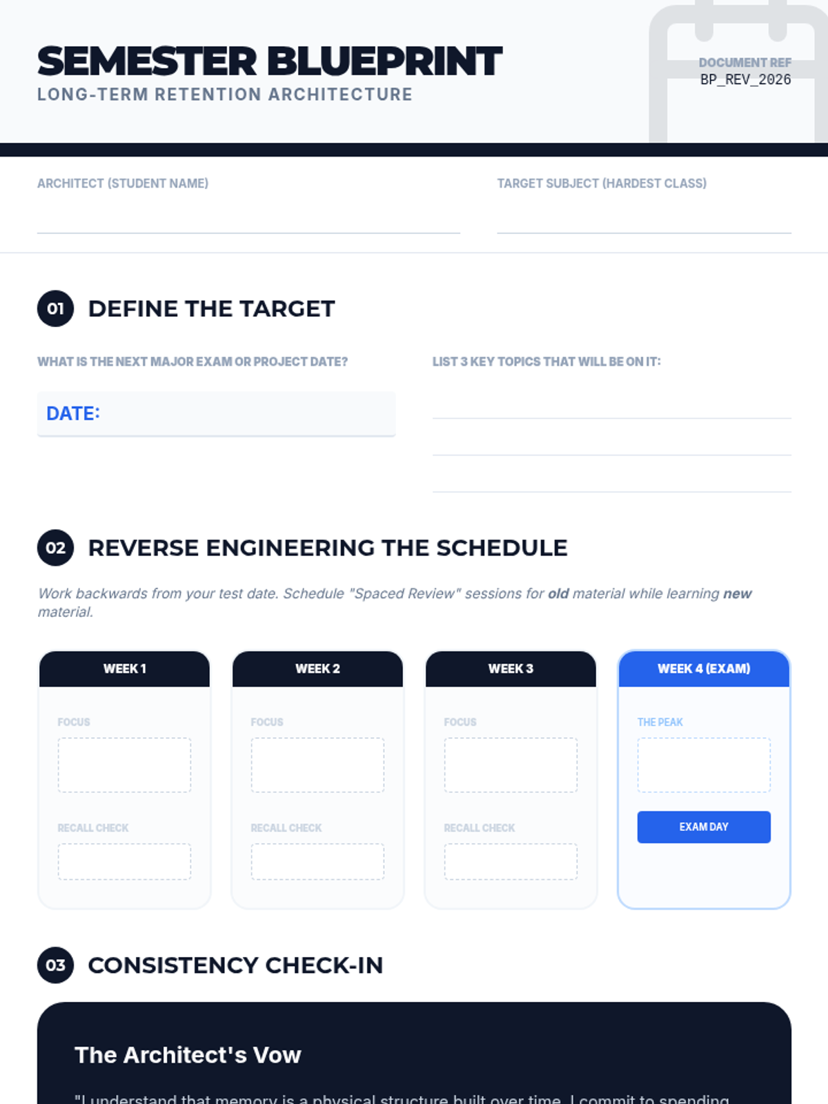 Students create a long-term review calendar that works backward from major exams. They integrate spaced repetition intervals into their digital or physical planners.