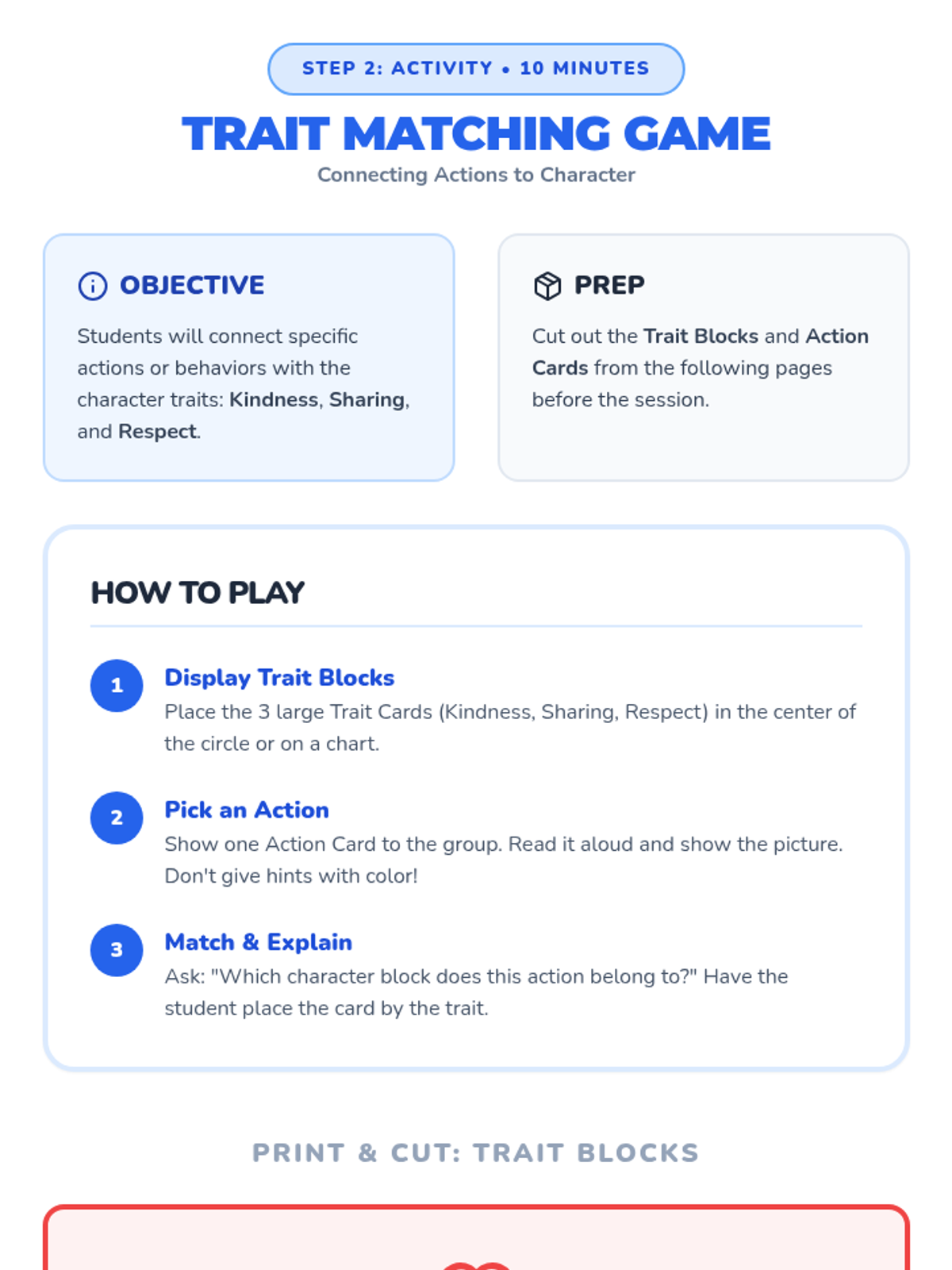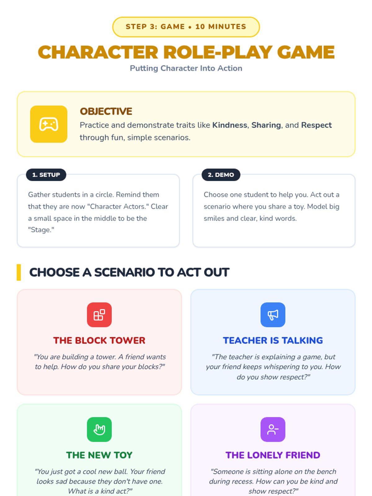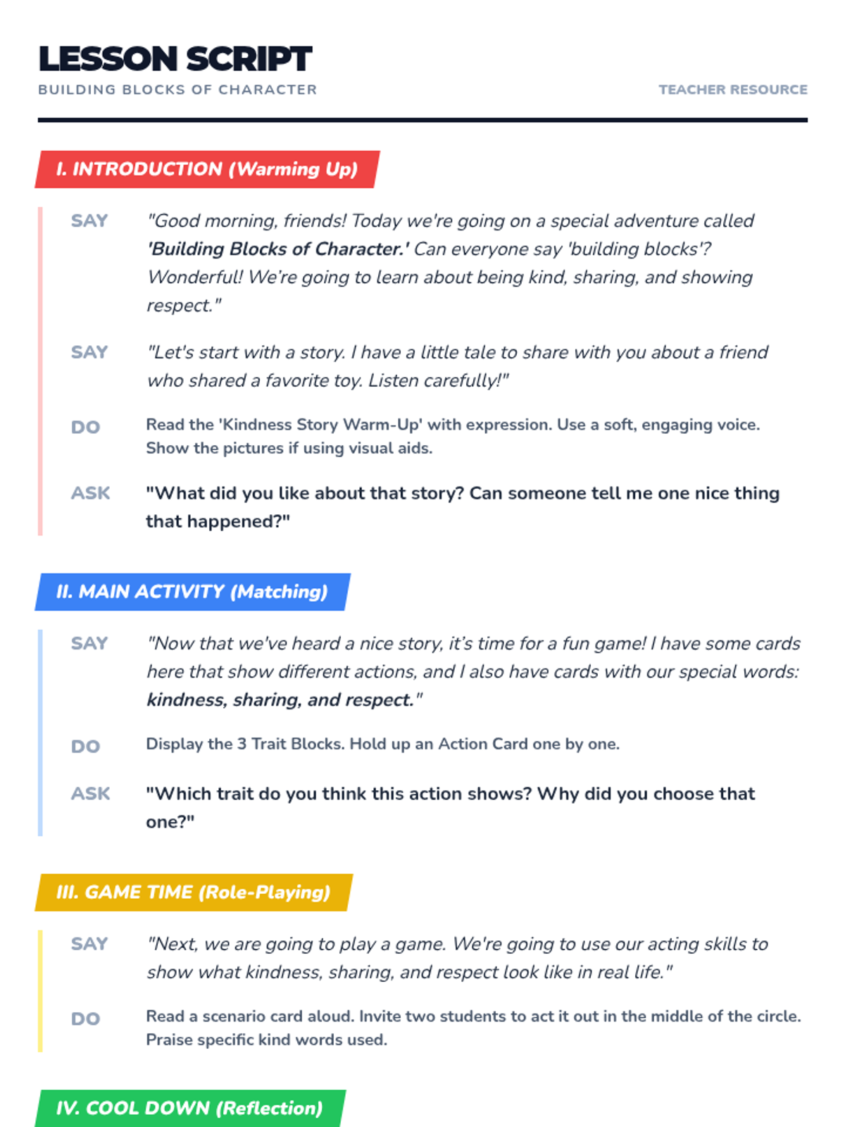 A 30-minute Tier 2 small group lesson for kindergarten students focusing on kindness, sharing, and respect through interactive play and discussion.