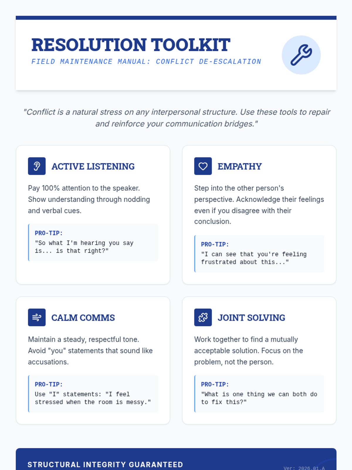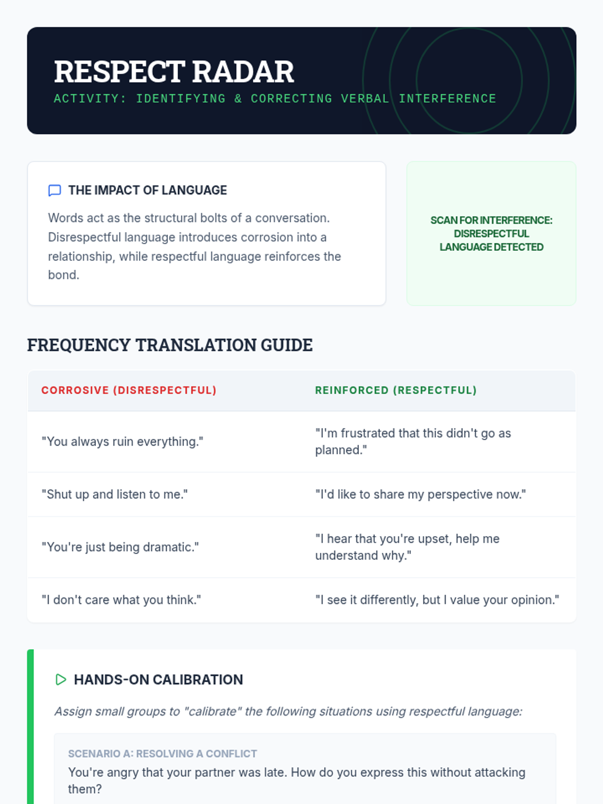 Teaches the mindset and language of self-correction to handle communication errors without loss of confidence.