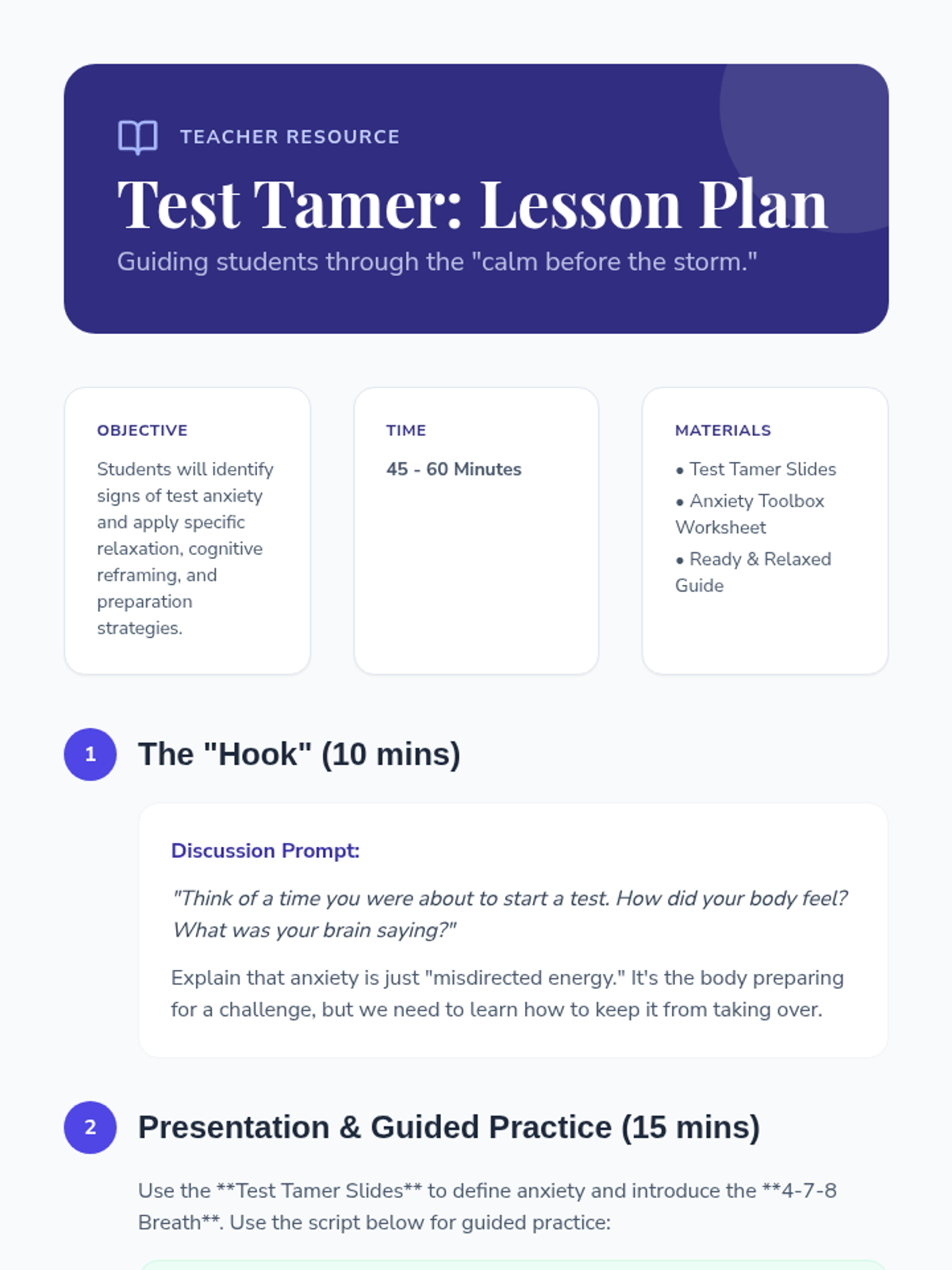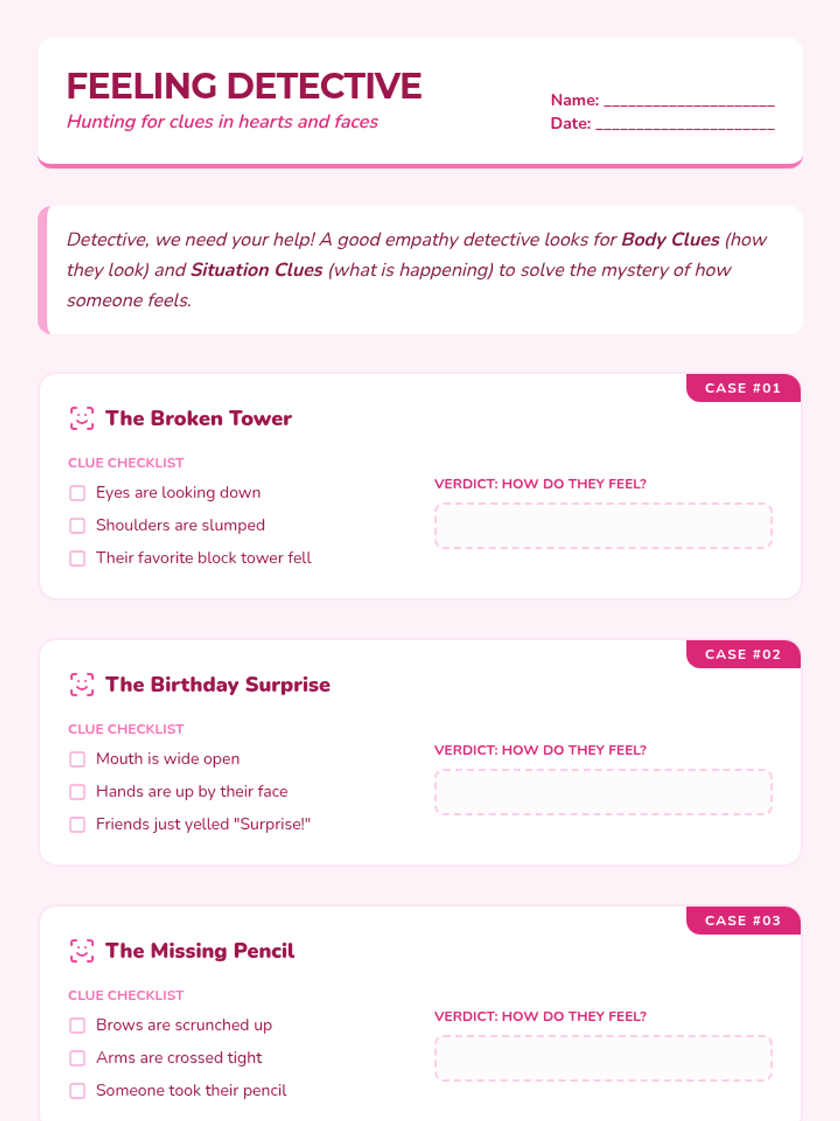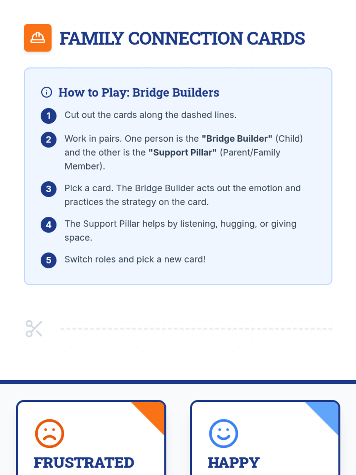 A small-group lesson for 3rd graders focused on strengthening parent-child relationships through emotional regulation and communication strategies. Students will explore sharing feelings, practice role-playing with family scenario cards, and learn how to seek support from parents when experiencing big emotions.
