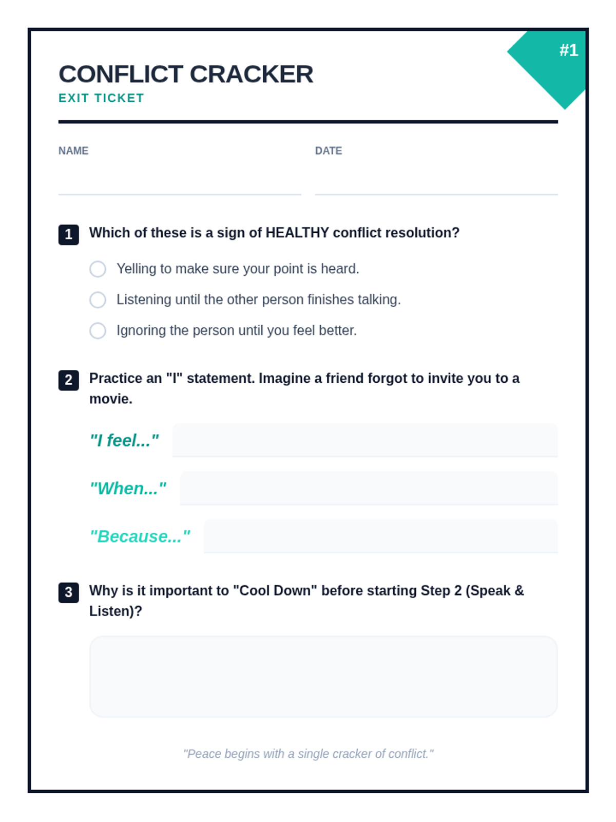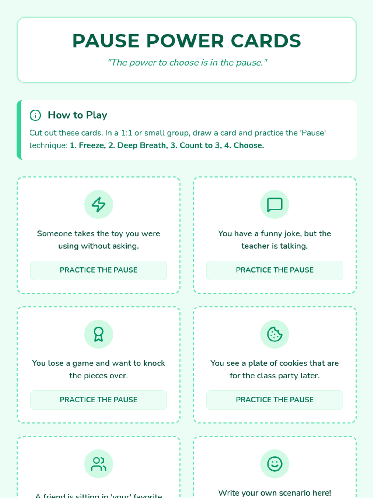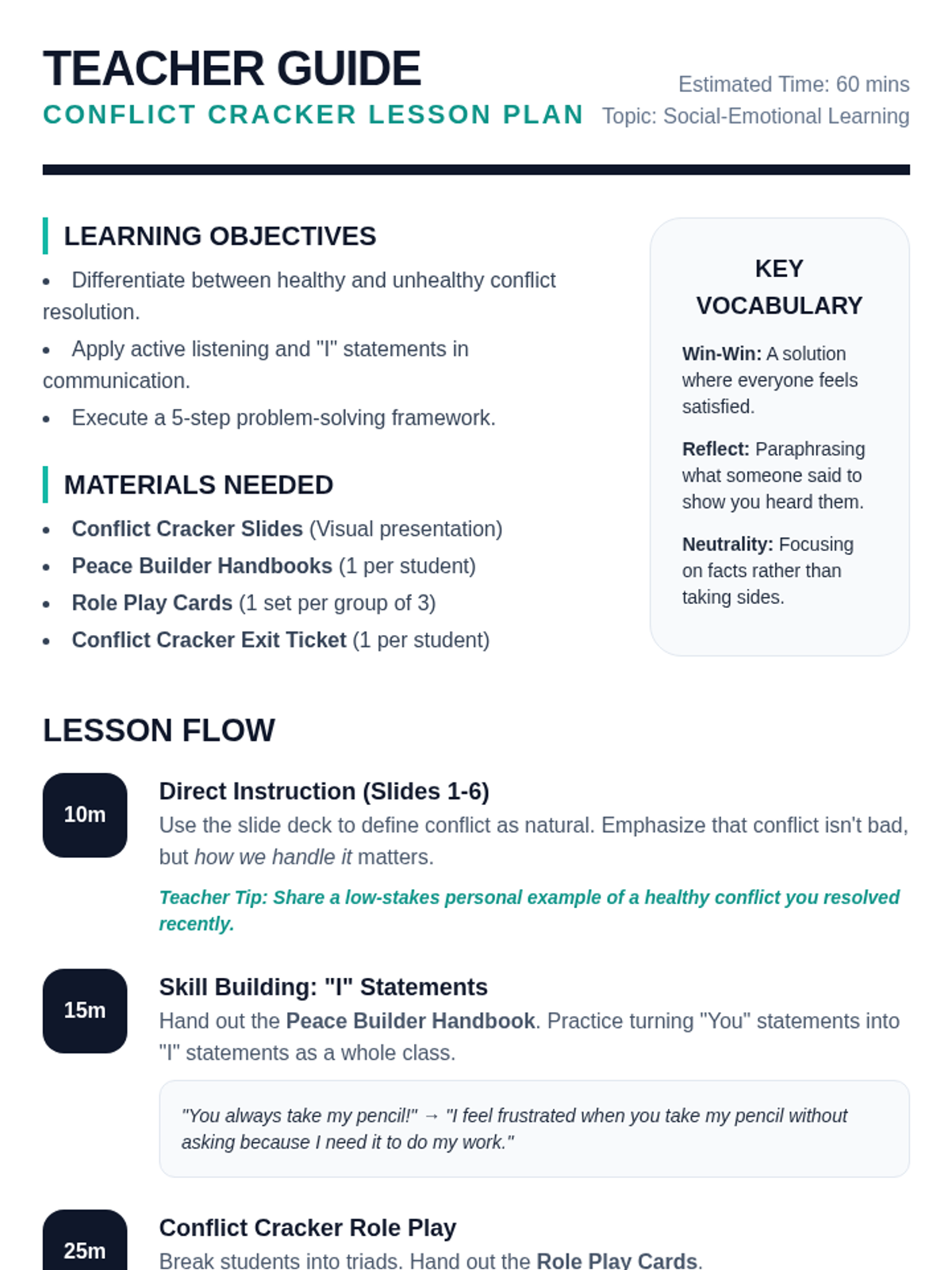 A small-group lesson for 3rd graders focused on strengthening parent-child relationships through emotional regulation and communication strategies. Students will explore sharing feelings, practice role-playing with family scenario cards, and learn how to seek support from parents when experiencing big emotions.