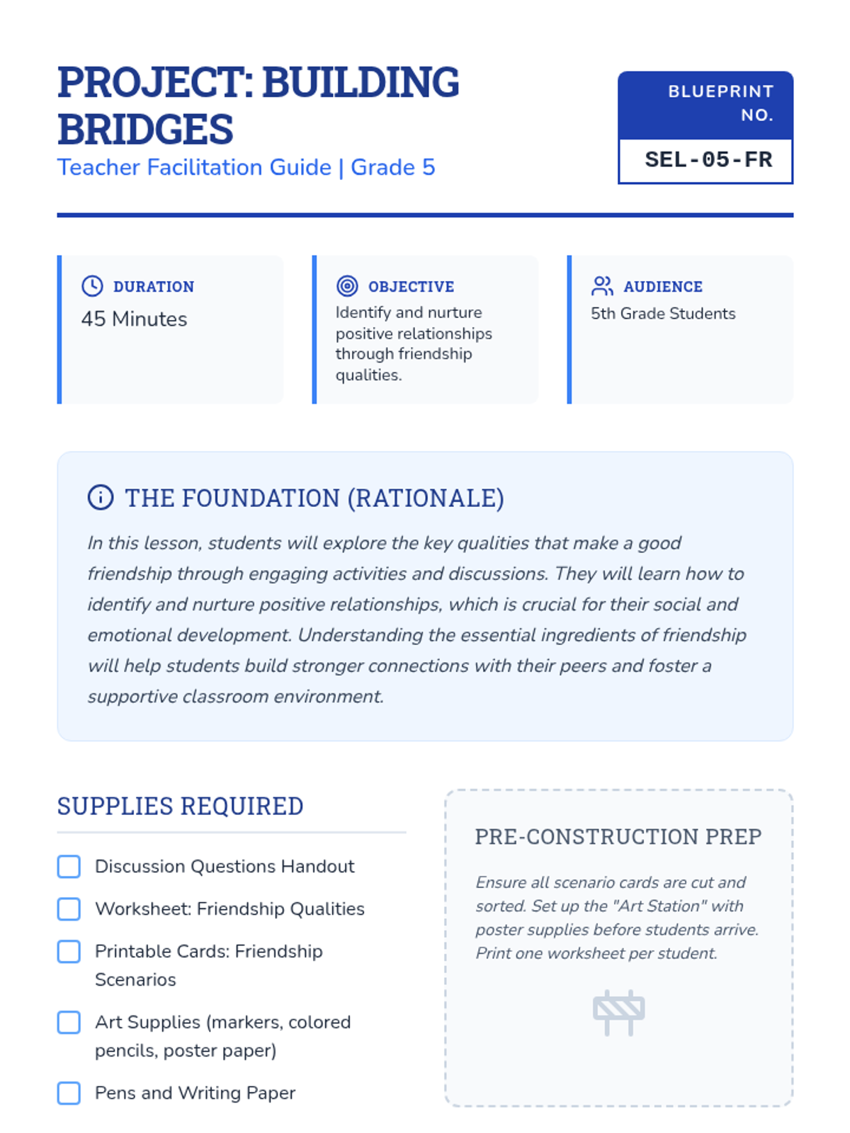 Students explore the qualities of healthy friendships through architectural-themed activities, building their own 'social bridges' through discussion, role-play, and creative reflection.