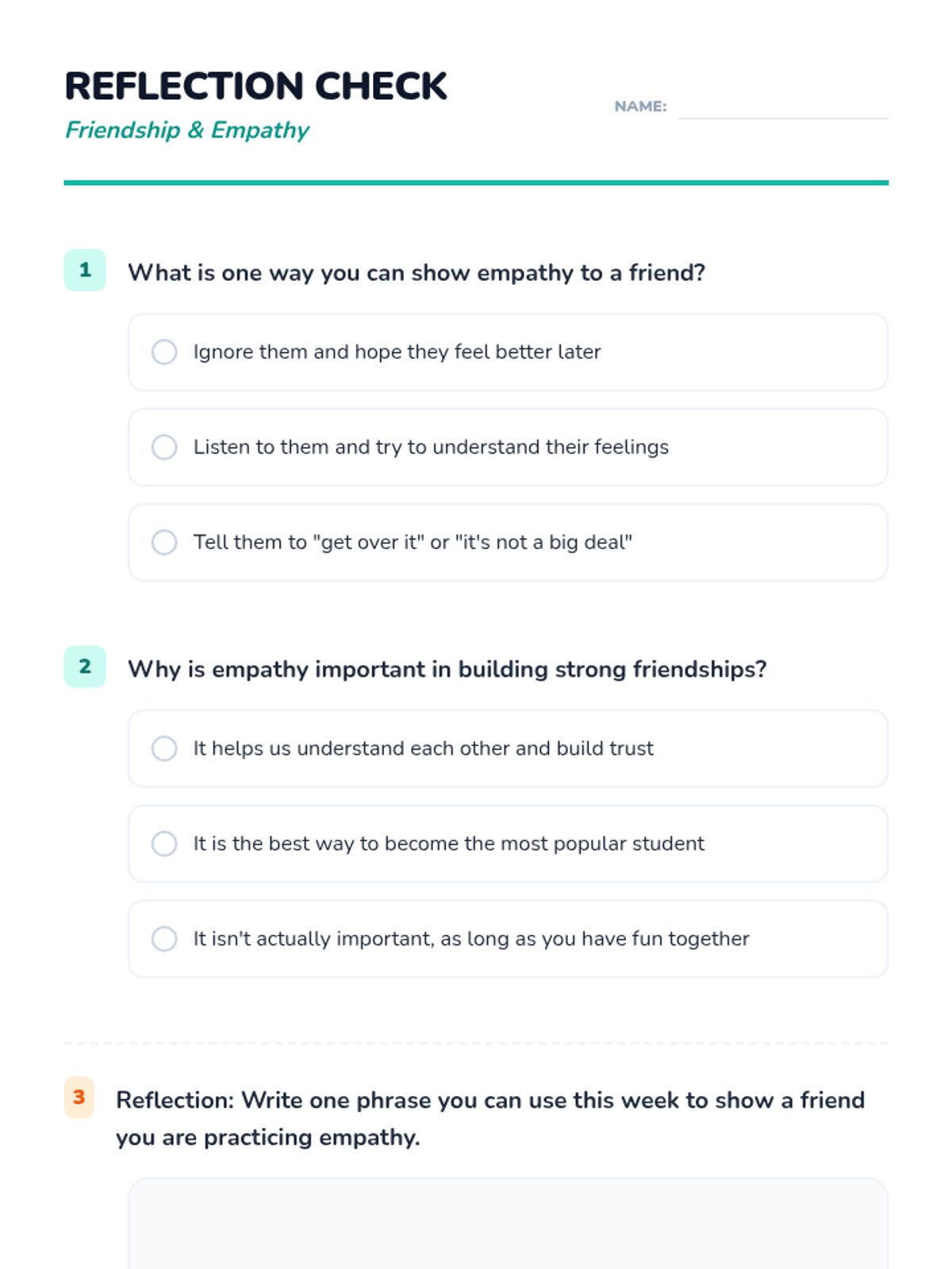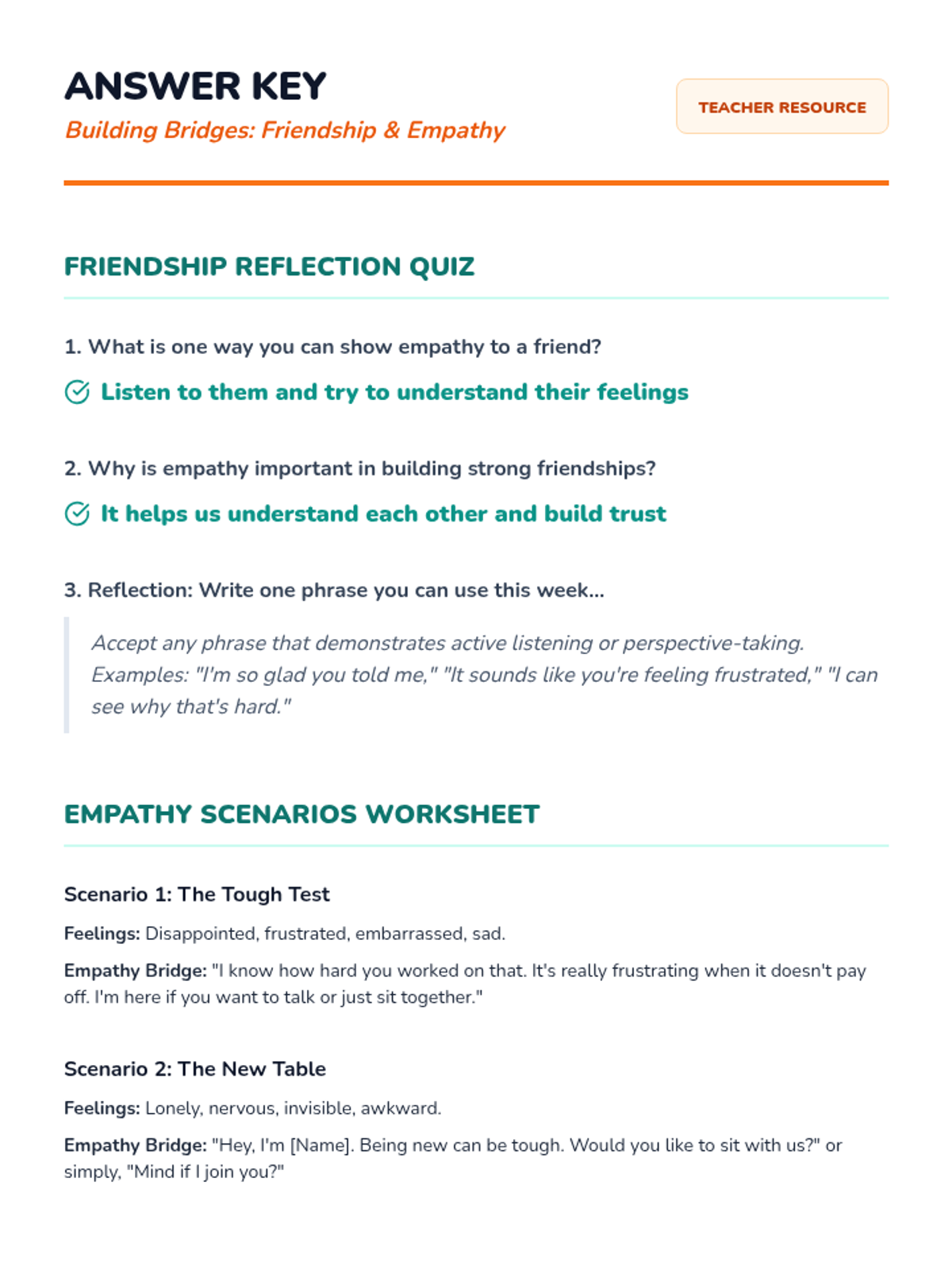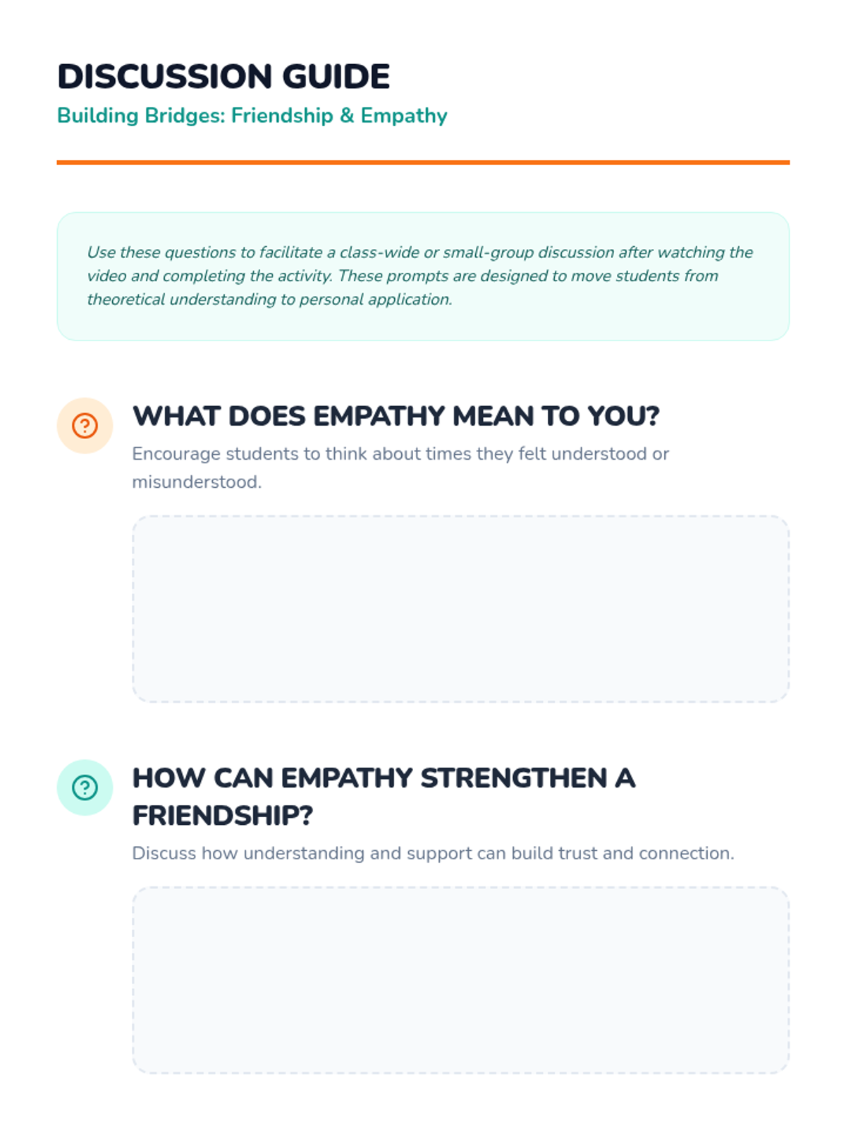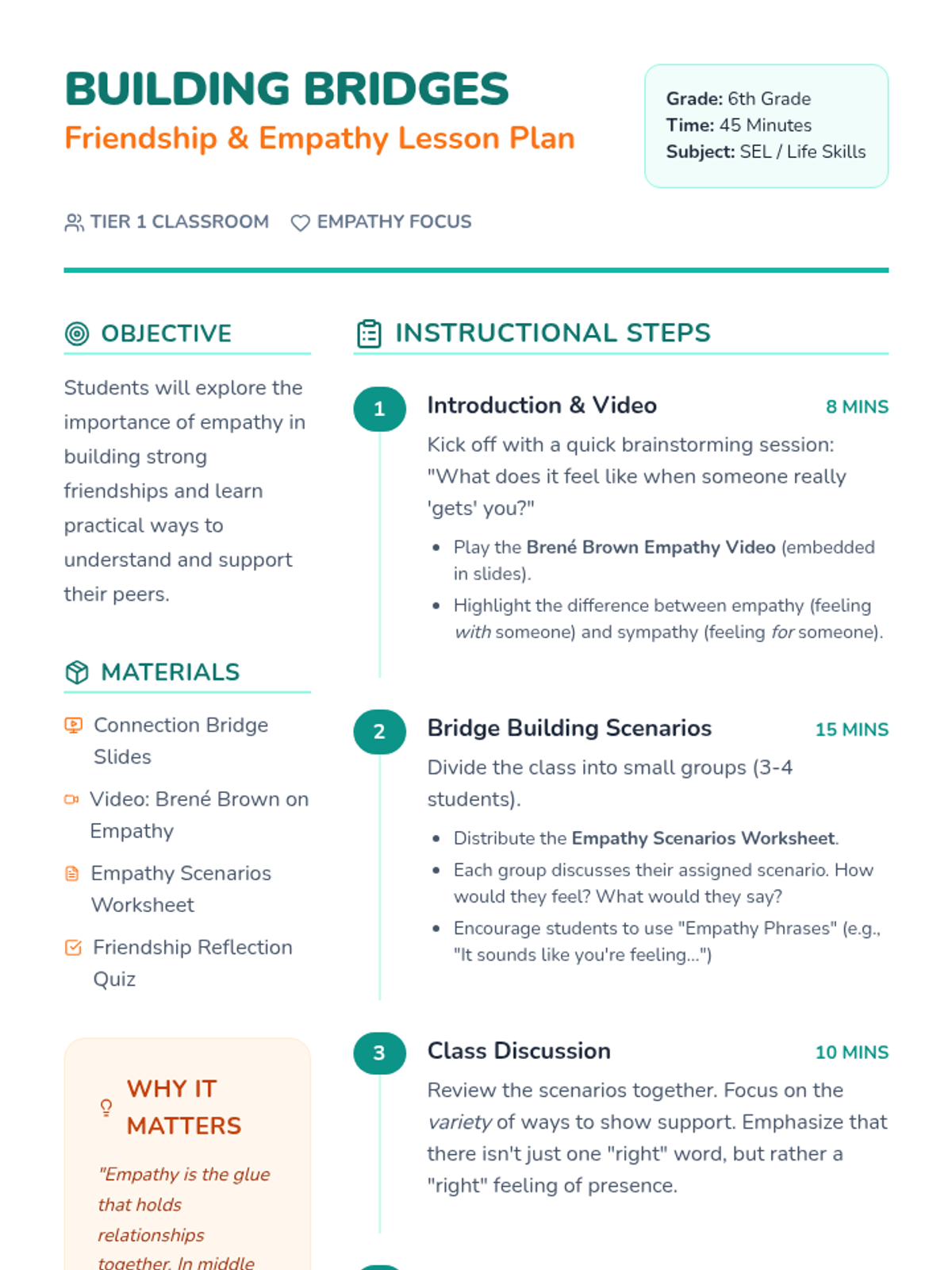 Students explore empathy's role in friendships through video, group scenarios, and reflection to build a more inclusive classroom community.