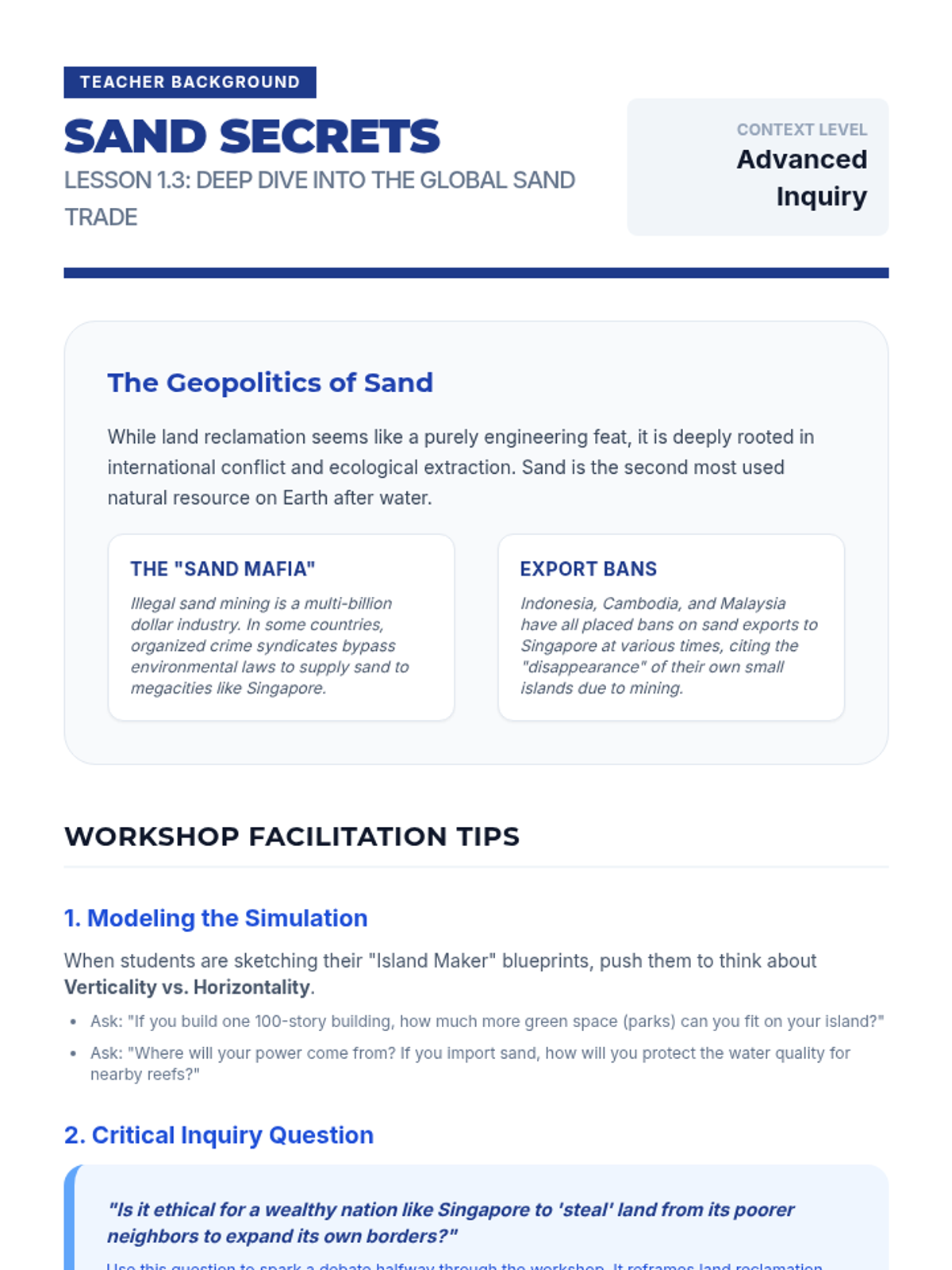 Focusing on Singapore and Hong Kong, students explore how land-scarce nations use reclamation and verticality to expand.