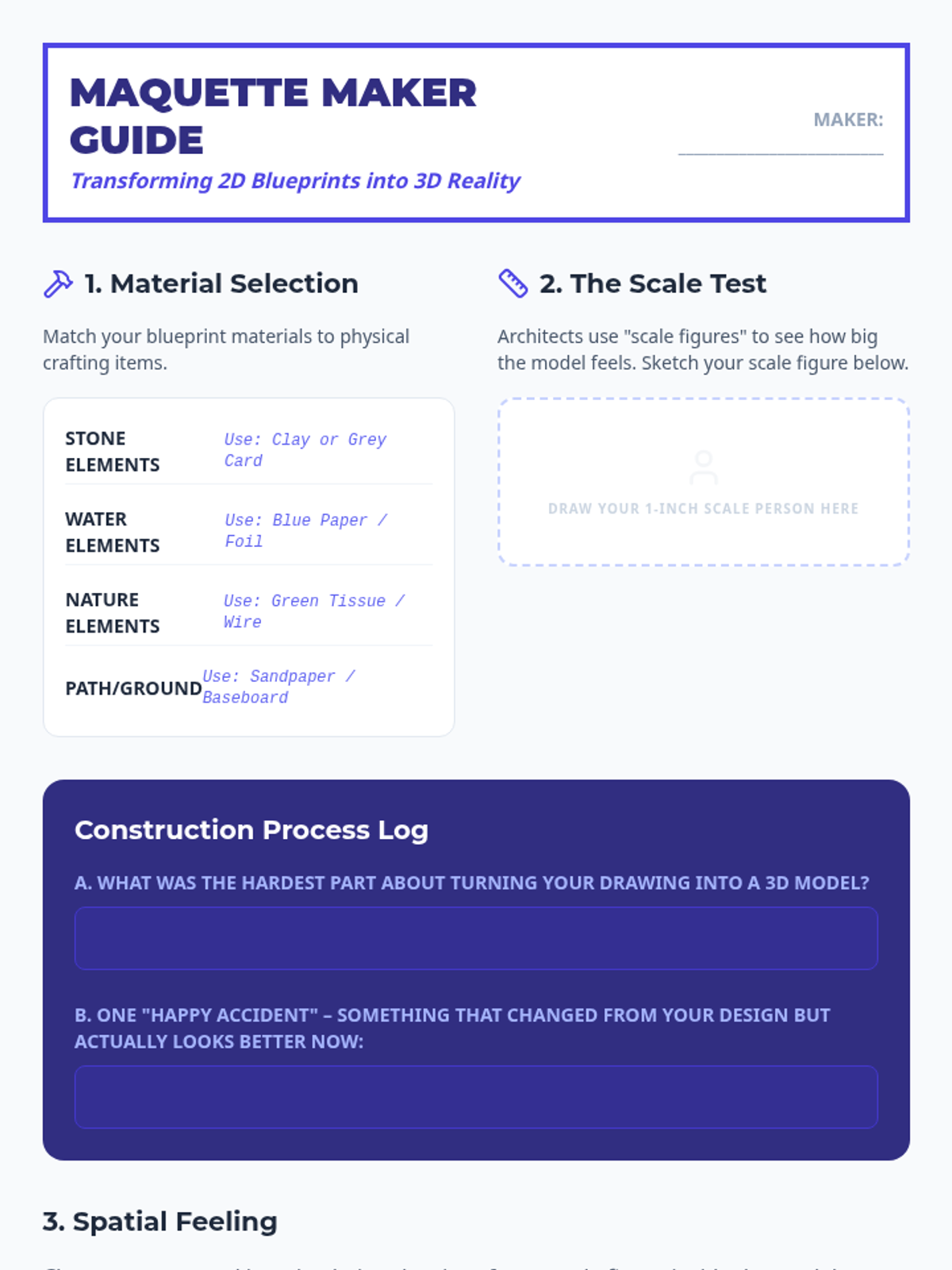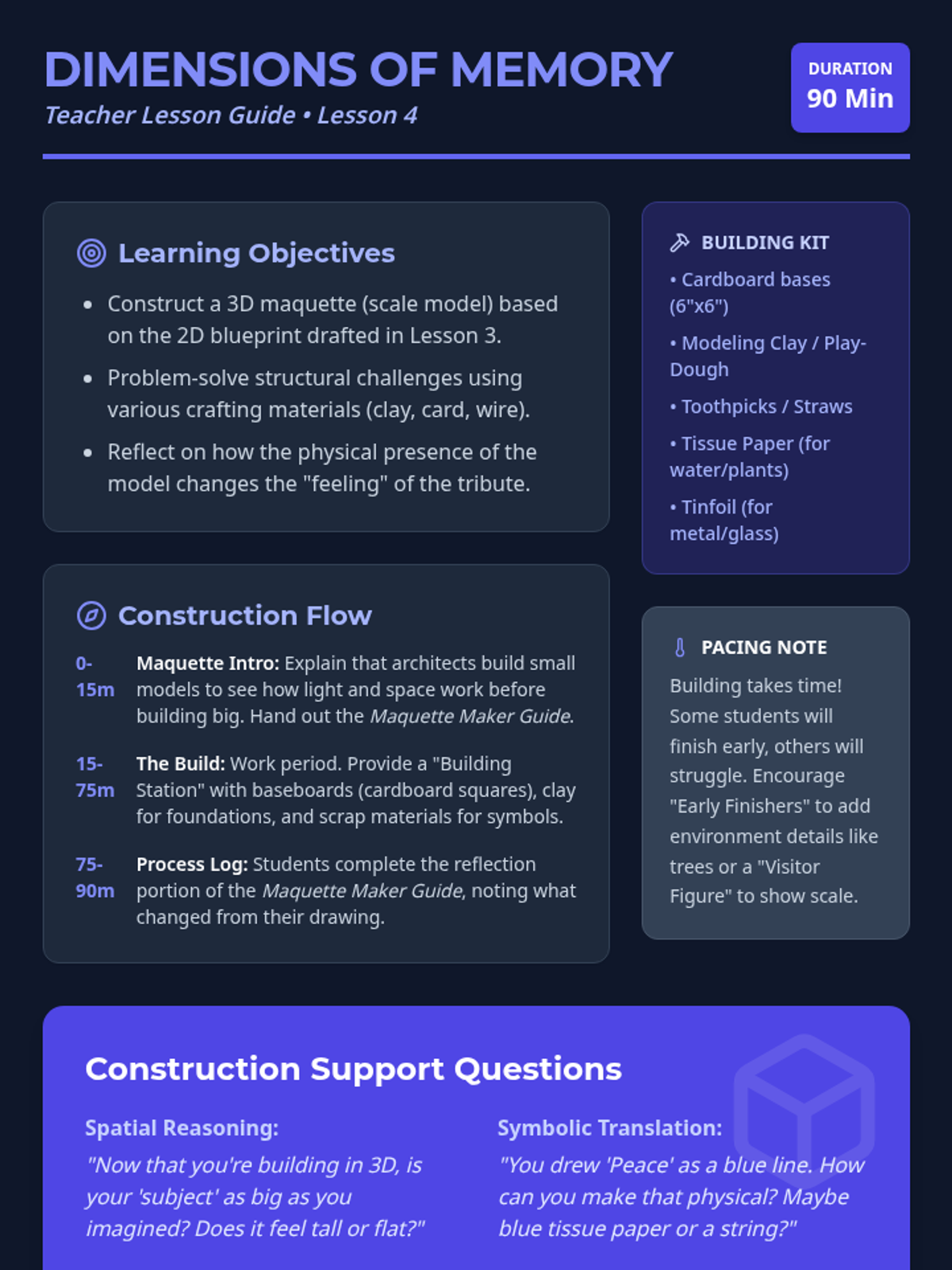 Using physical materials, students transform their 2D designs into 3D maquettes, exploring how spatial reality affects the feeling of a memorial.