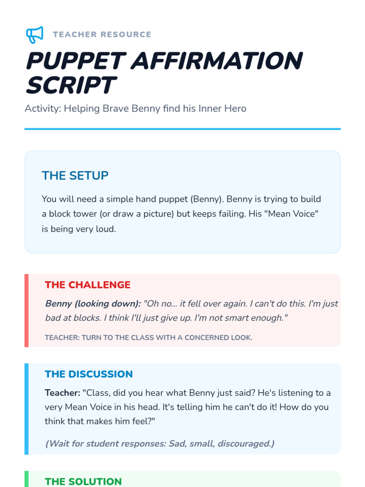Students explore their internal monologue and practice self-affirmation by creating 'I Am' posters with positive character traits.
