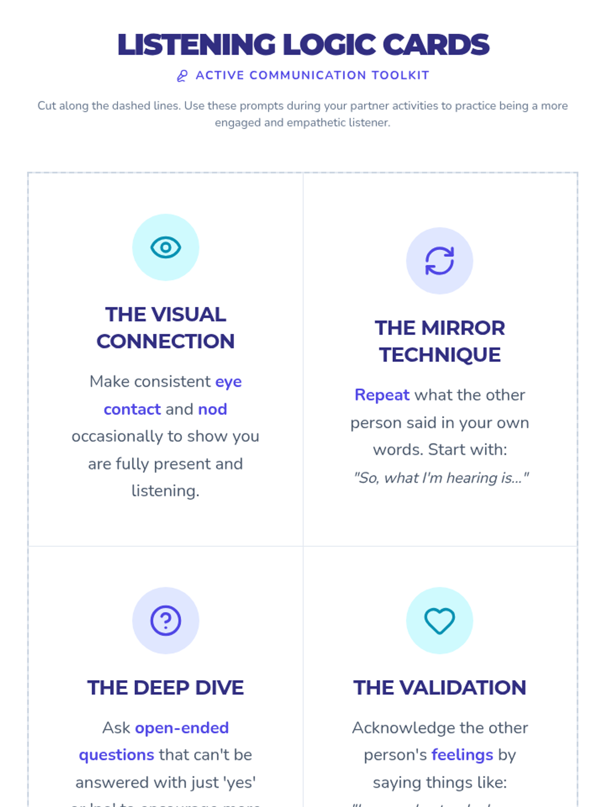 Develops assertive communication skills using I-Statements and empathetic listening techniques.