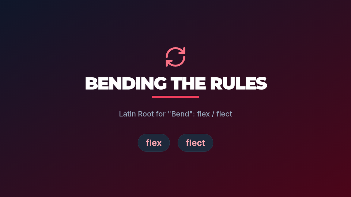 Covers the Latin root 'flex' or 'flect' (to bend), focusing on words like reflect, flexible, and deflection.