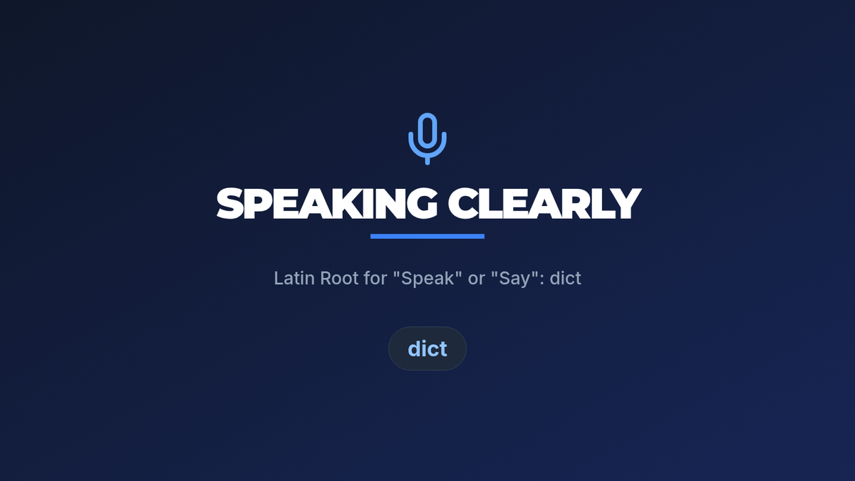 Focuses on the Latin root 'dict' (to speak or say), exploring common words like dictate, predict, and verdict.