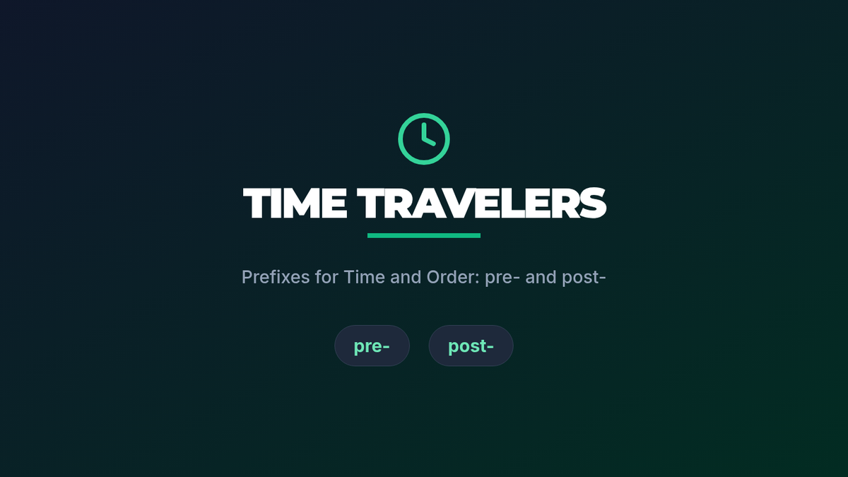 Introduces time-based prefixes pre- and post-, focusing on academic vocabulary used in history and science contexts.